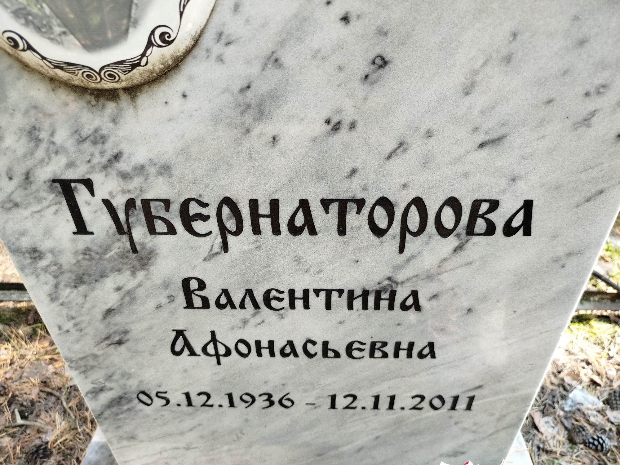 Дата рождения: 05.12.1936 Дата смерти: 12.11.2011 Наличие ограды: Нет Кладбище: Чернореченское Секция кладбища: 1 Номер ряда: 1 Номер захоронения: 80 Вид захоронения: В землю Координаты: