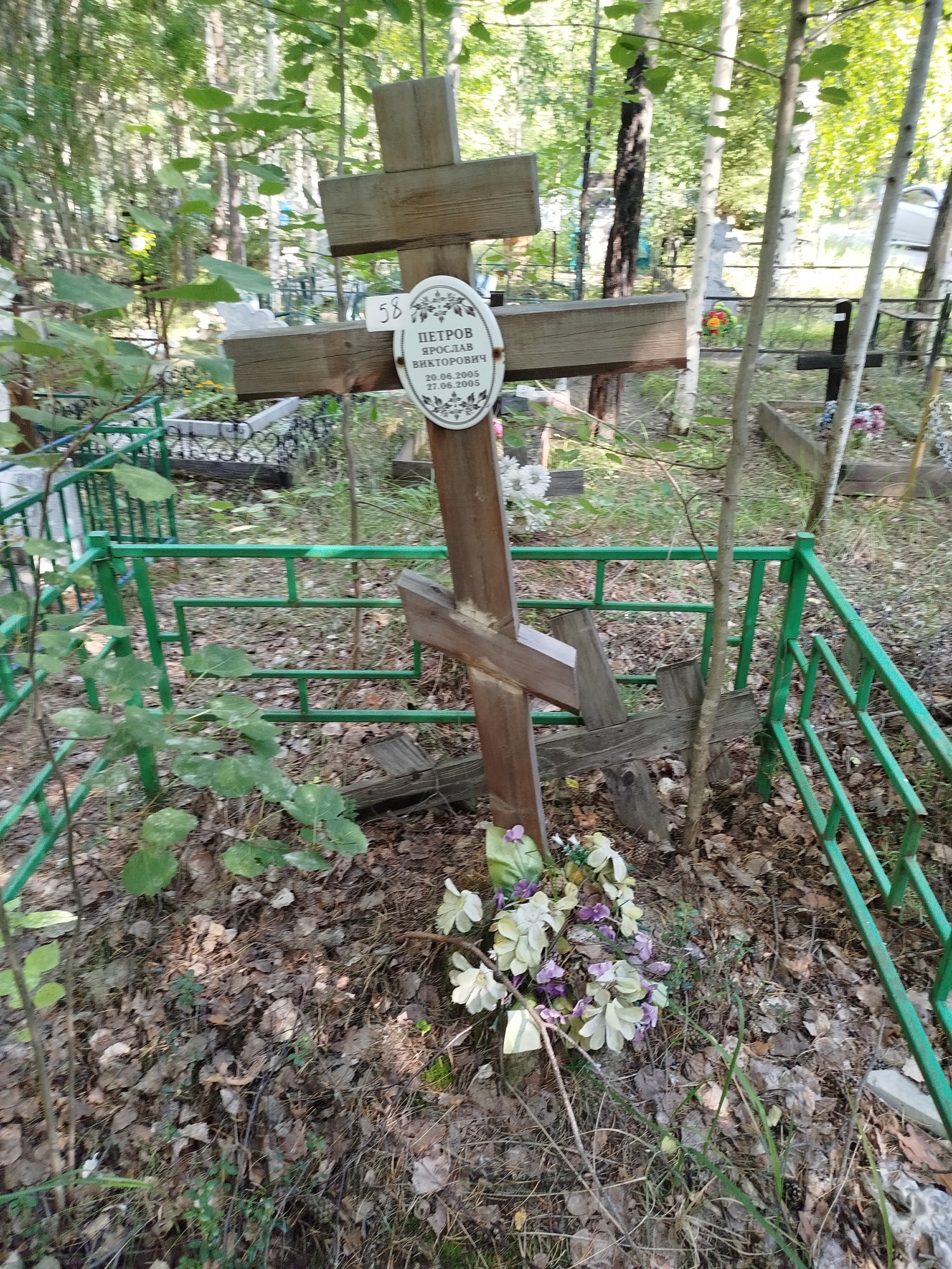 Дата рождения: 20.06.2005 Дата смерти: 27.06.2005 Наличие ограды: Нет Кладбище: Чернореченское Секция кладбища: 11 Номер ряда: 1 Номер захоронения: 58 Вид захоронения: В землю Координаты: