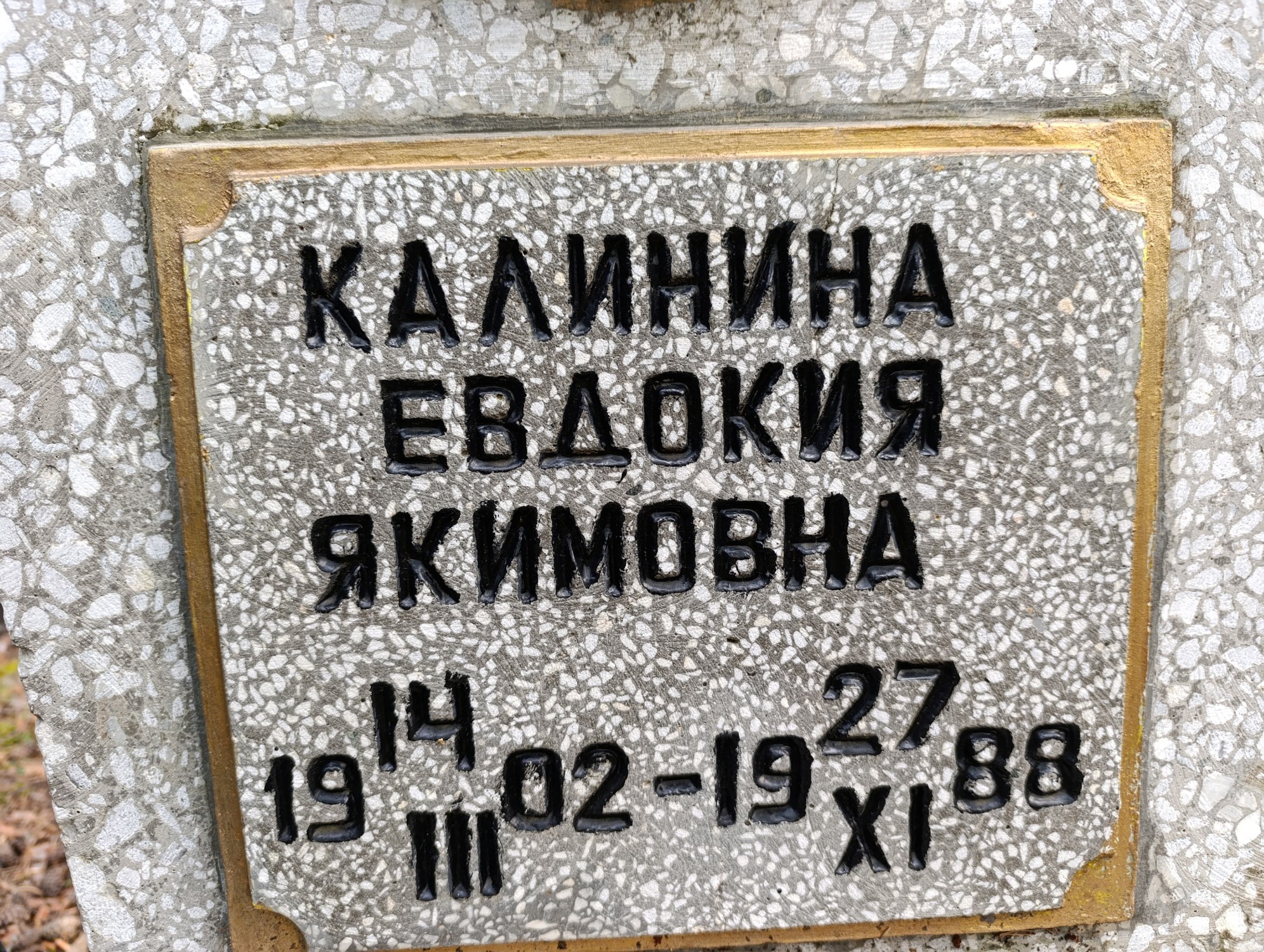 Дата рождения: 14.03.1902 Дата смерти: 27.11.1988 Наличие ограды: Нет Кладбище: Чернореченское Секция кладбища: 2 Номер ряда: 1 Номер захоронения: 1497 Вид захоронения: В землю Координаты: