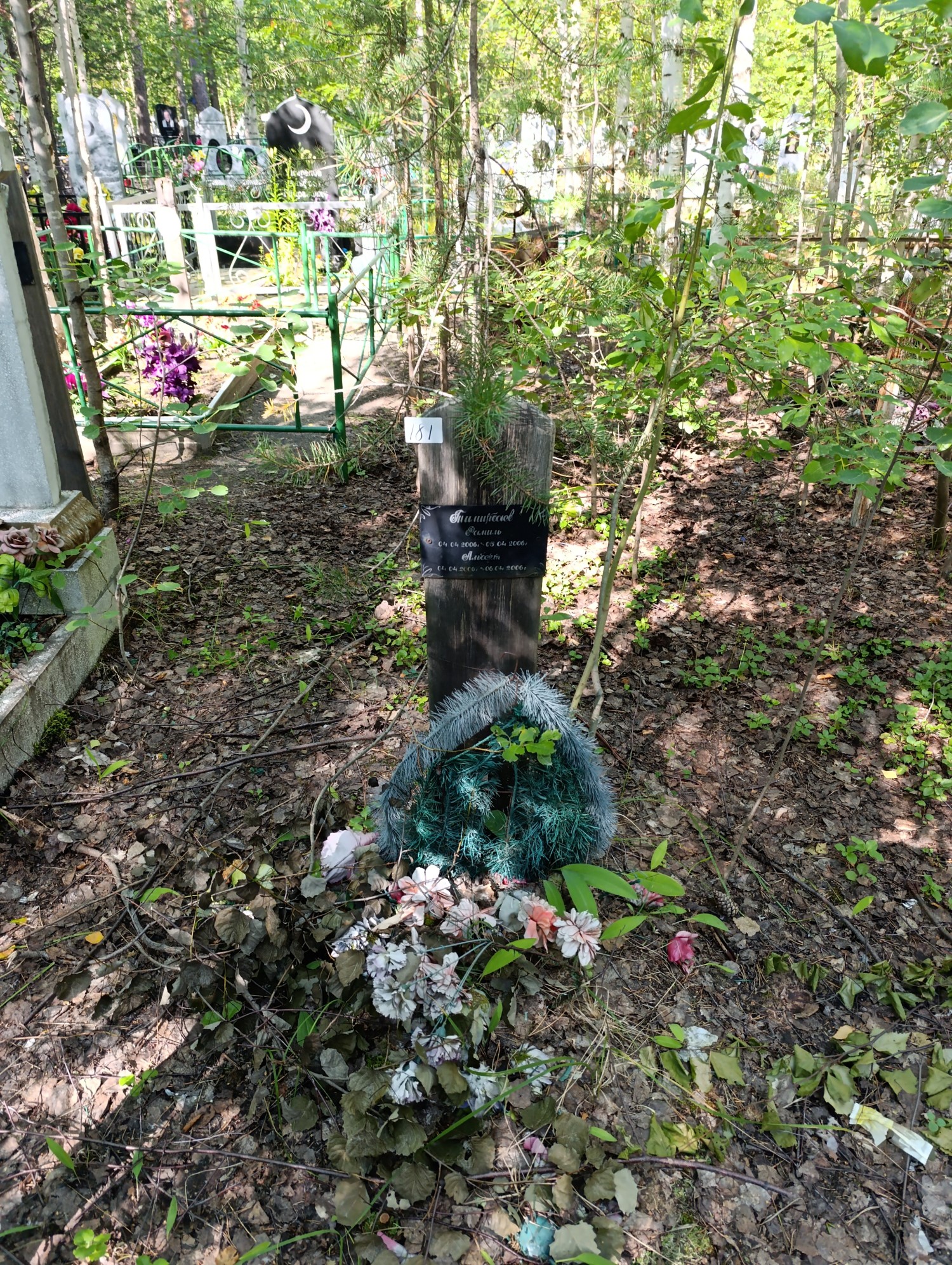 Дата рождения: 04.04.2006 Дата смерти: 05.04.2006 Наличие ограды: Нет Кладбище: Чернореченское Секция кладбища: 2_Мусульманские захоронения Номер ряда: 1 Номер захоронения: 181 Вид захоронения: В землю Координаты: