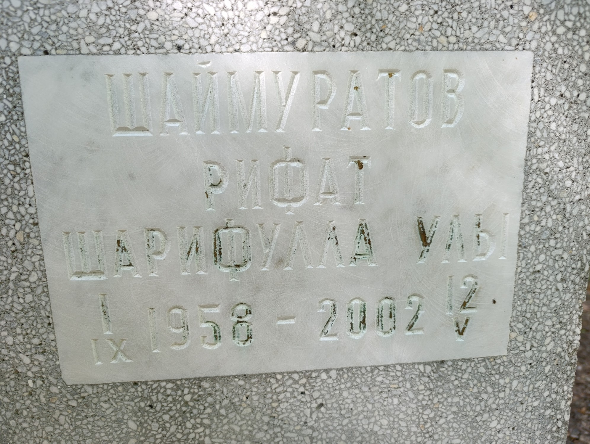 Дата рождения: 01.09.1958 Дата смерти: 12.05.2002 Наличие ограды: Нет Кладбище: Чернореченское Секция кладбища: 2_Мусульманские захоронения Номер ряда: 1 Номер захоронения: 344 Вид захоронения: В землю Координаты: