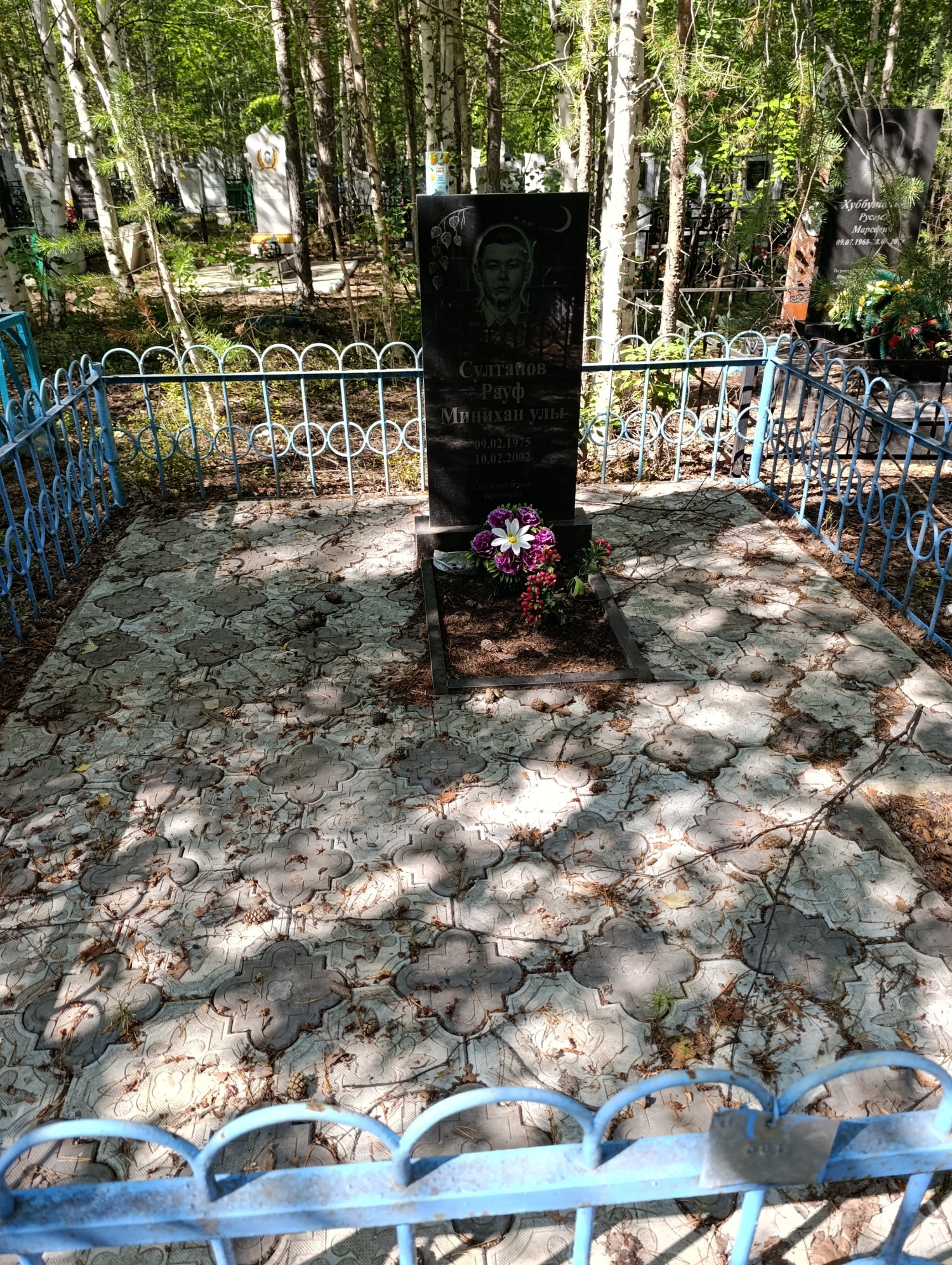 Дата рождения: 09.02.1975 Дата смерти: 10.02.2002 Наличие ограды: Нет Кладбище: Чернореченское Секция кладбища: 2_Мусульманские захоронения Номер ряда: 1 Номер захоронения: 390 Вид захоронения: В землю Координаты: