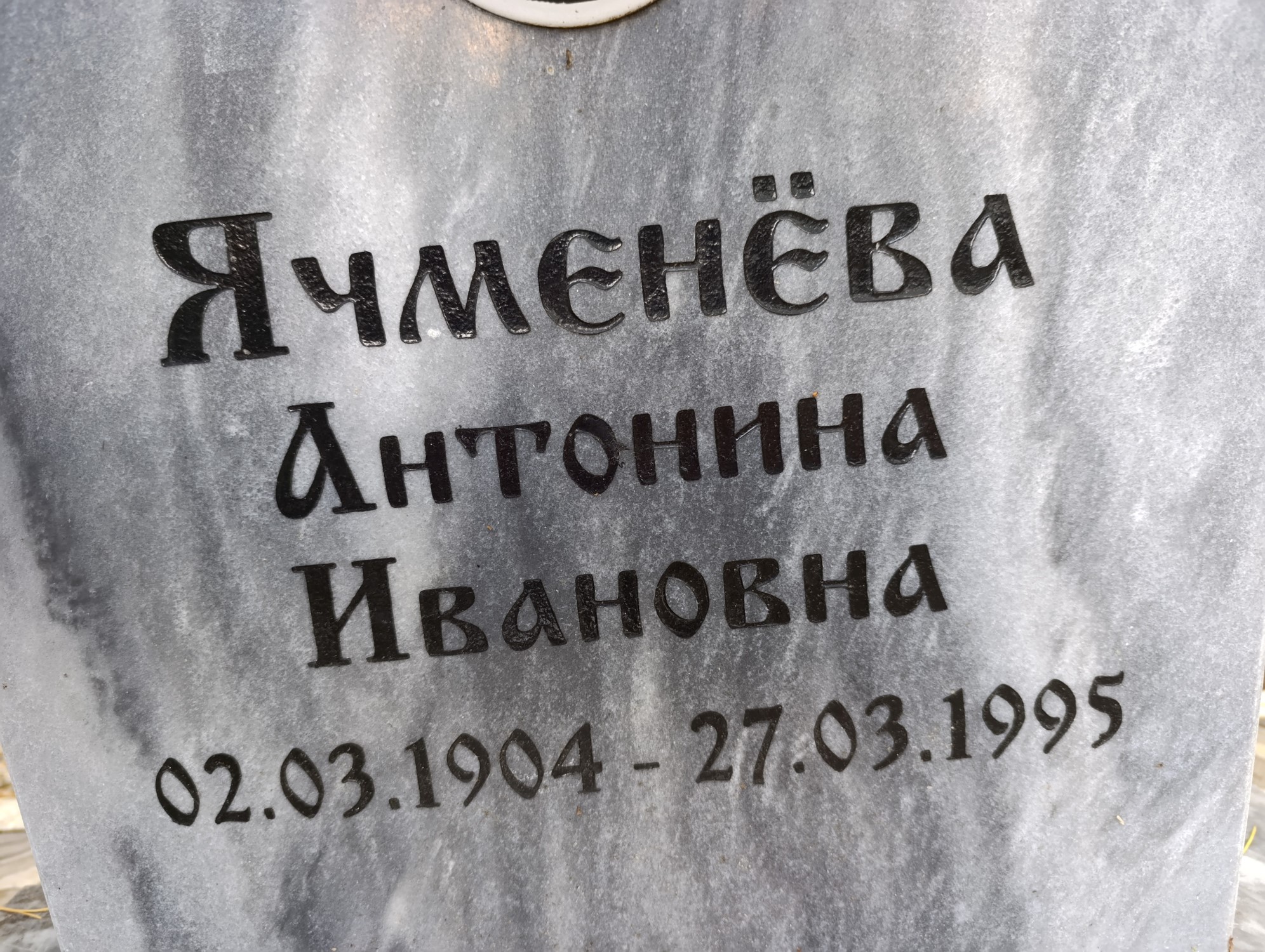 Дата рождения: 02.03.1904 Дата смерти: 27.03.1995 Наличие ограды: Нет Кладбище: Чернореченское Секция кладбища: 6 Номер ряда: 1 Номер захоронения: 326 Вид захоронения: В землю Координаты: