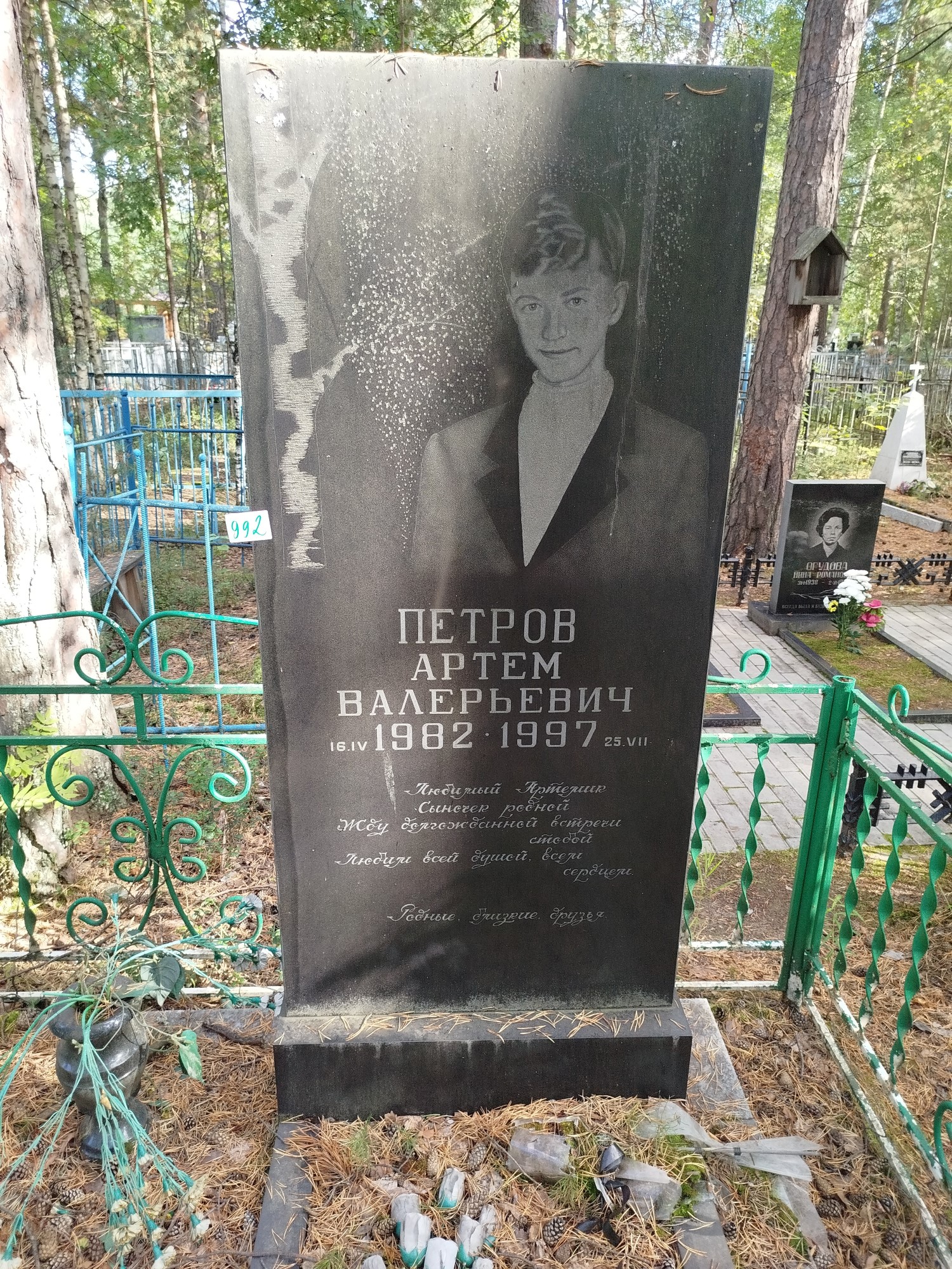 Дата рождения: 16.04.1982 Дата смерти: 25.07.1997 Наличие ограды: Нет Кладбище: Чернореченское Секция кладбища: 1 Номер ряда: 1 Номер захоронения: 992 Вид захоронения: В землю Координаты: