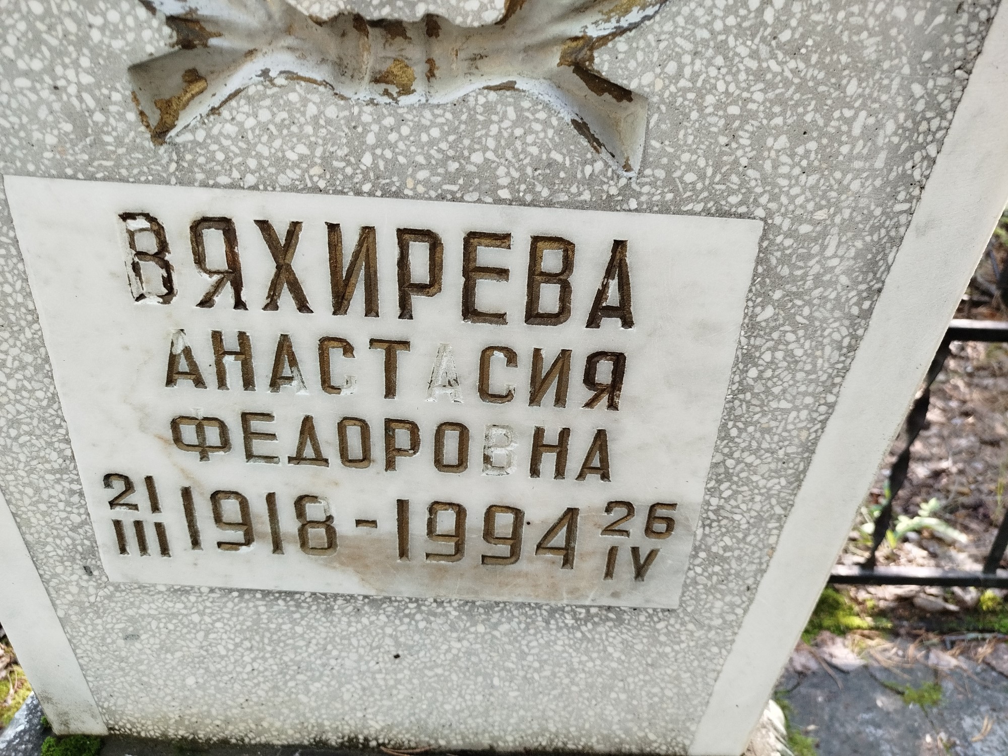 Дата рождения: 21.03.1918 Дата смерти: 26.04.1994 Наличие ограды: Нет Кладбище: Чернореченское Секция кладбища: 7 Номер ряда: 1 Номер захоронения: 333 Вид захоронения: В землю Координаты: