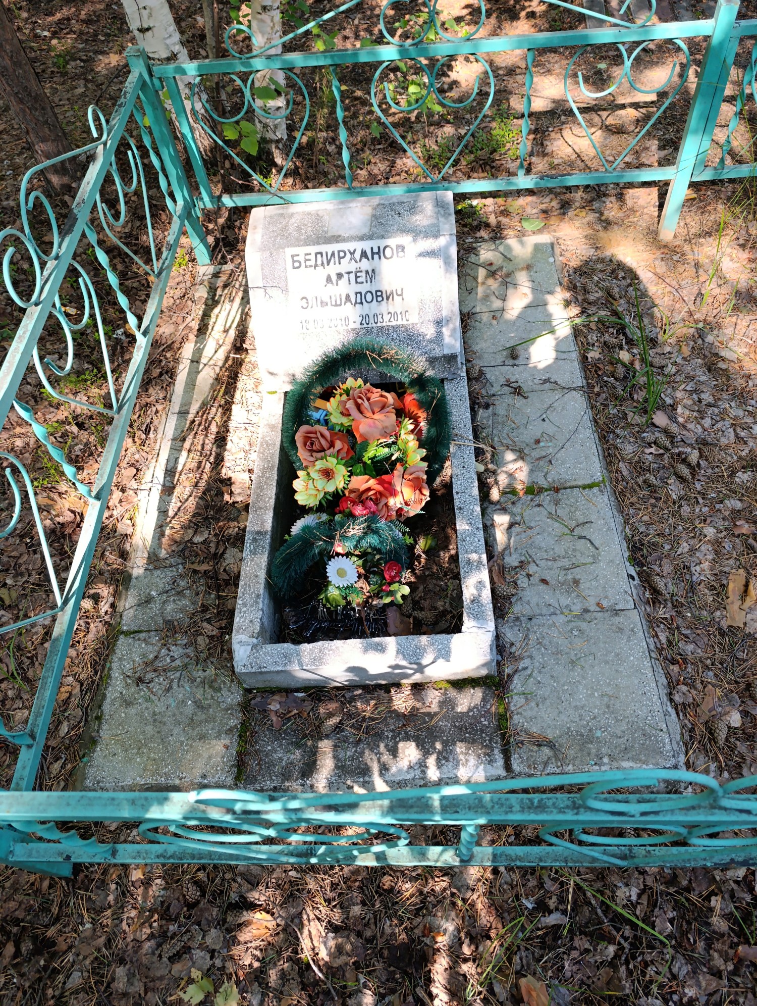 Дата рождения: 18.03.2010 Дата смерти: 20.03.2010 Наличие ограды: Нет Кладбище: Чернореченское Секция кладбища: 2_Мусульманские захоронения Номер ряда: 1 Номер захоронения: 103 Вид захоронения: В землю Координаты: