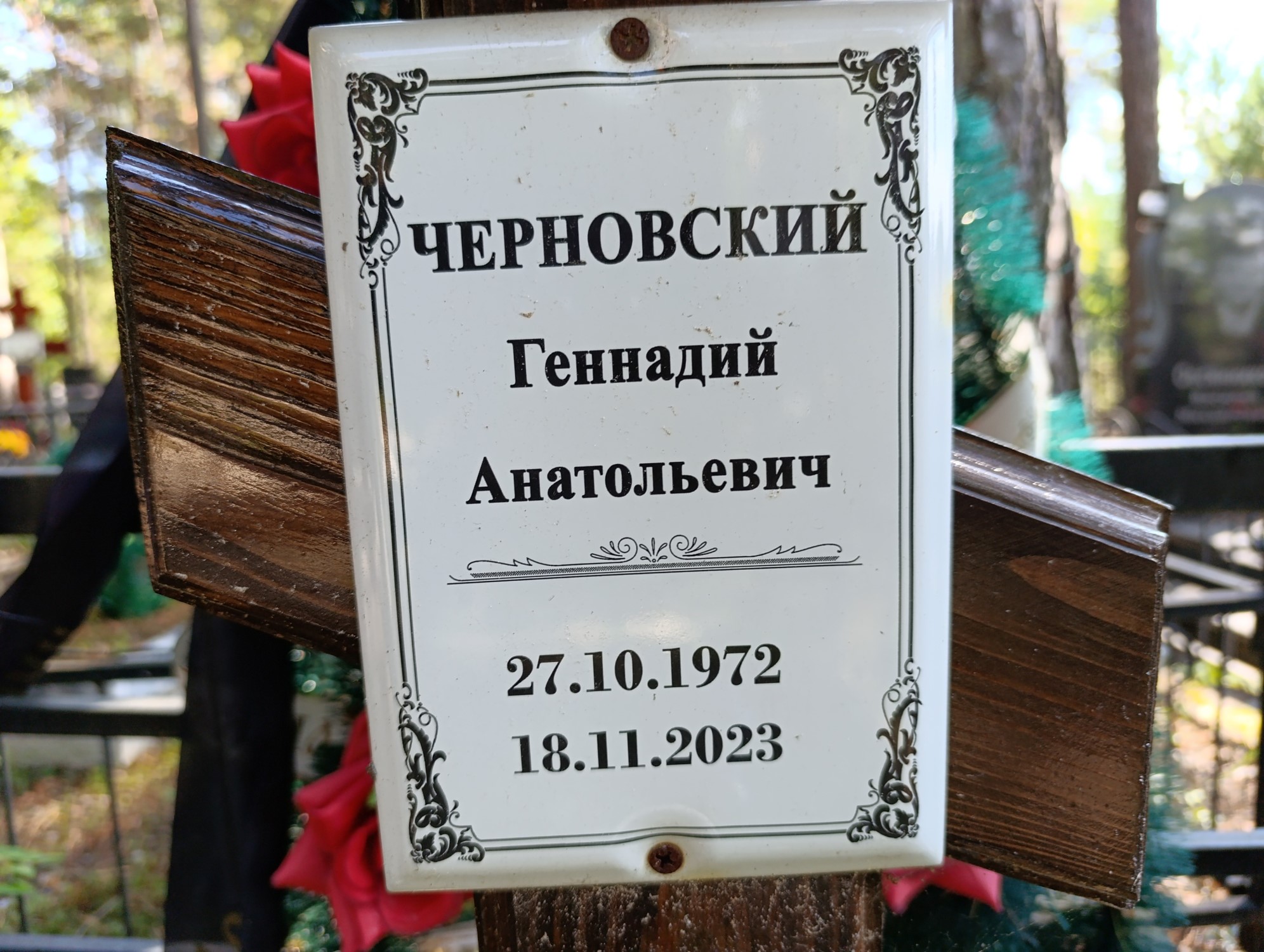 Дата рождения: 27.10.1972 Дата смерти: 18.11.2023 Наличие ограды: Нет Кладбище: Чернореченское Секция кладбища: 9 Номер ряда: 1 Номер захоронения: 731 Вид захоронения: В землю Координаты: