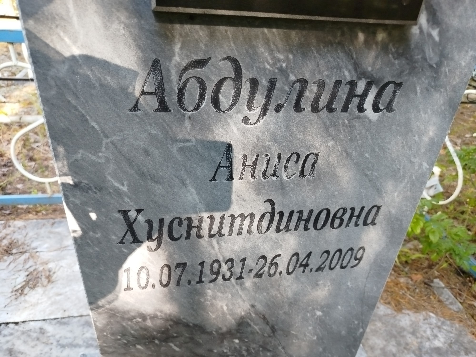 Дата рождения: 10.07.1931 Дата смерти: 26.04.2009 Наличие ограды: Нет Кладбище: Чернореченское Секция кладбища: 1_Мусульманские захоронения Номер ряда: 1 Номер захоронения: 89 Вид захоронения: В землю Координаты: