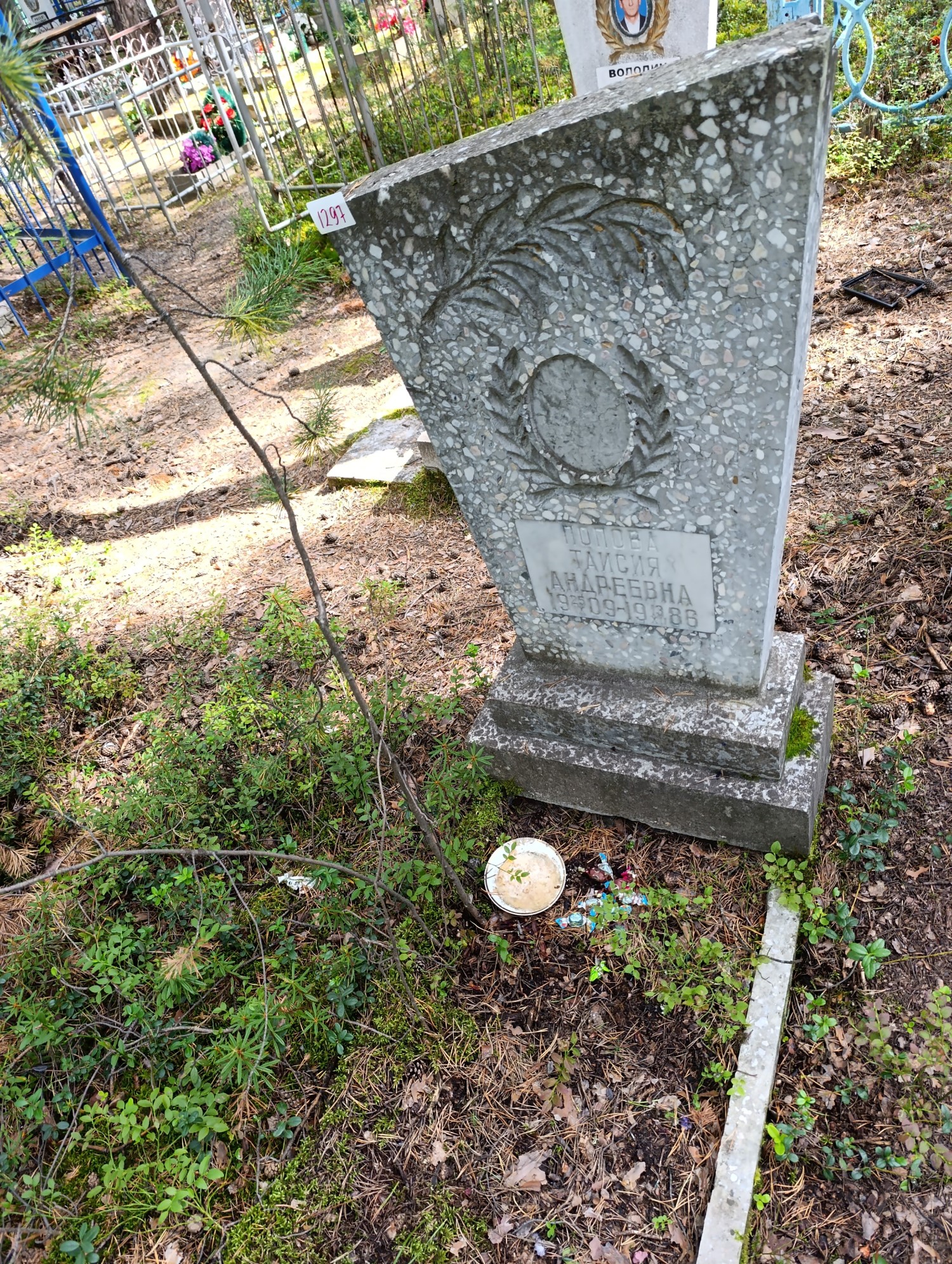 Дата рождения: 25.09.1909 Дата смерти: 13.12.1986 Наличие ограды: Нет Кладбище: Чернореченское Секция кладбища: 2 Номер ряда: 1 Номер захоронения: 1297 Вид захоронения: В землю Координаты: