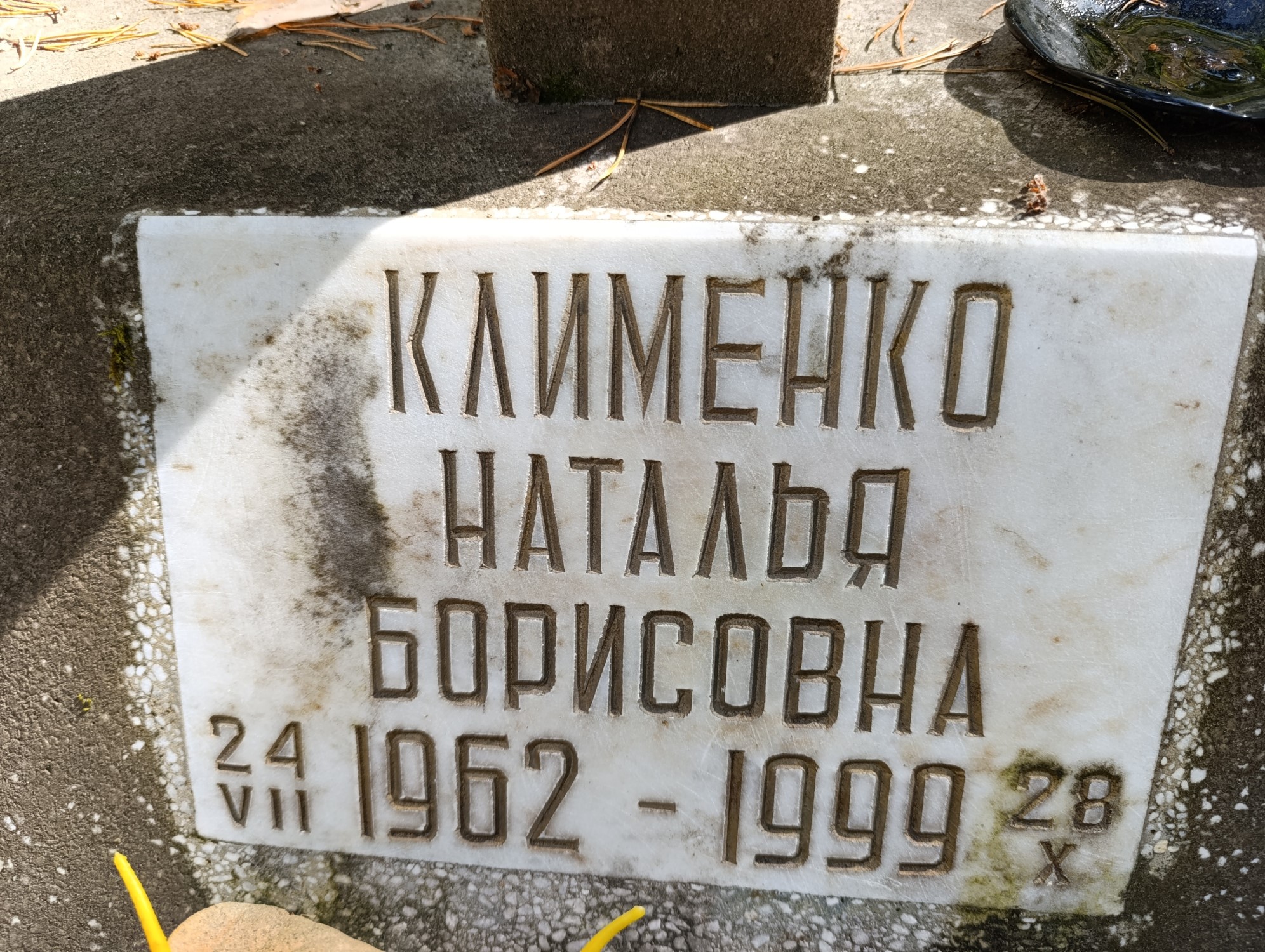 Дата рождения: 24.07.1962 Дата смерти: 28.10.1999 Наличие ограды: Нет Кладбище: Чернореченское Секция кладбища: 2 Номер ряда: 1 Номер захоронения: 1281 Вид захоронения: В землю Координаты: