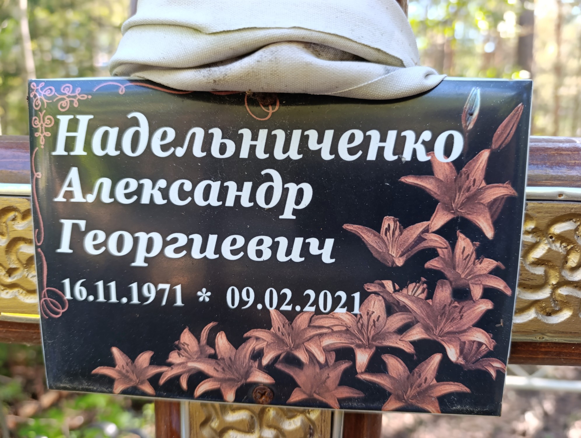 Дата рождения: 16.11.1971 Дата смерти: 09.02.2021 Наличие ограды: Нет Кладбище: Чернореченское Секция кладбища: 4 Номер ряда: 1 Номер захоронения: 789 Вид захоронения: В землю Координаты: