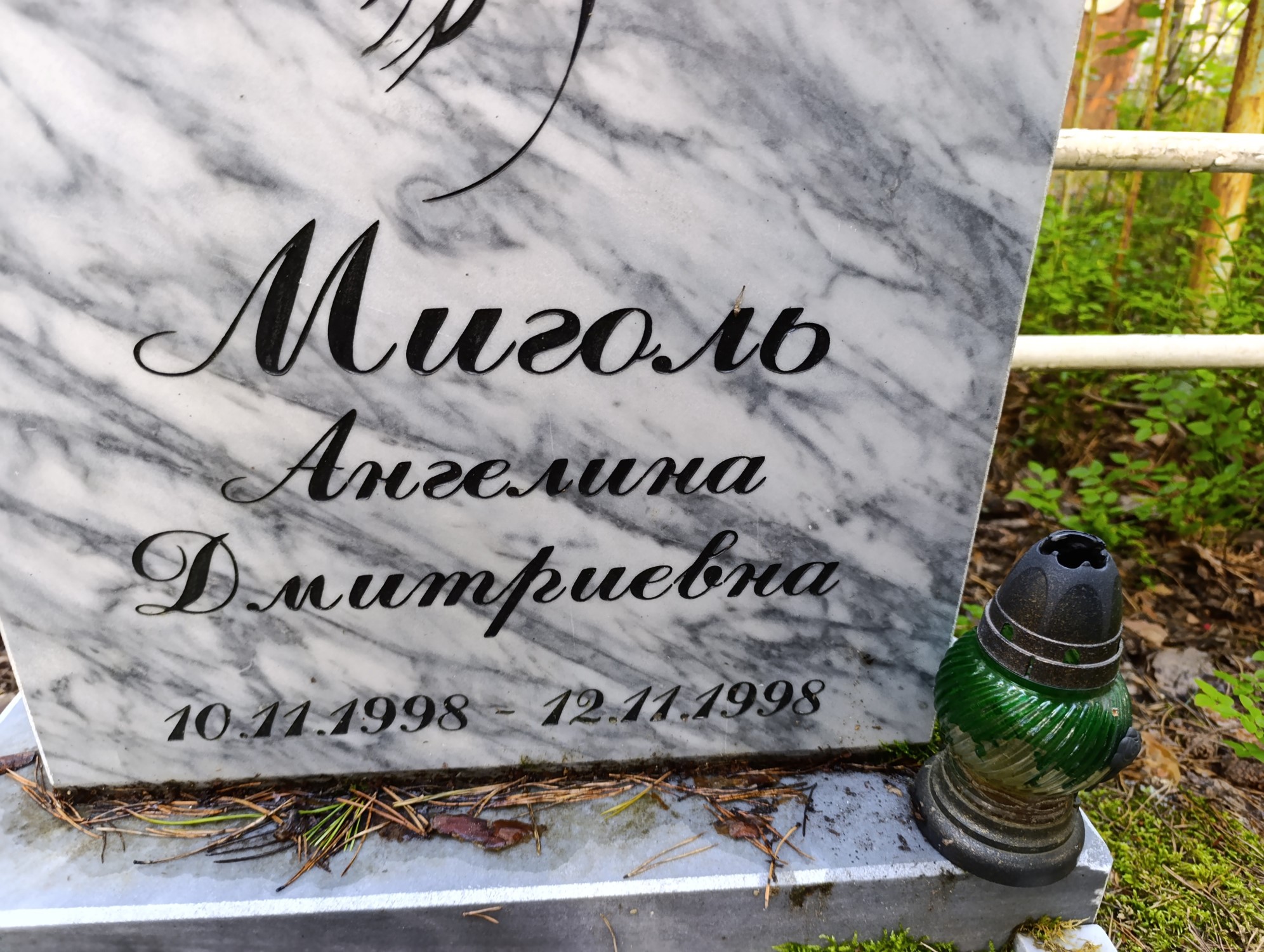 Дата рождения: 10.11.1998 Дата смерти: 12.11.1998 Наличие ограды: Нет Кладбище: Чернореченское Секция кладбища: 2 Номер ряда: 1 Номер захоронения: 1609 Вид захоронения: В землю Координаты: