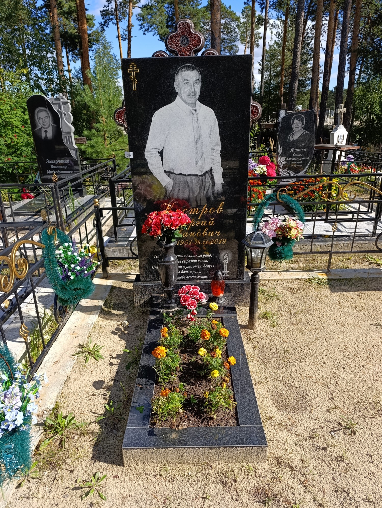 Дата рождения: 23.05.1951 Дата смерти: 16.11.2019 Наличие ограды: Нет Кладбище: Чернореченское Секция кладбища: Номер ряда: 1 Номер захоронения: 534 Вид захоронения: В землю Координаты: