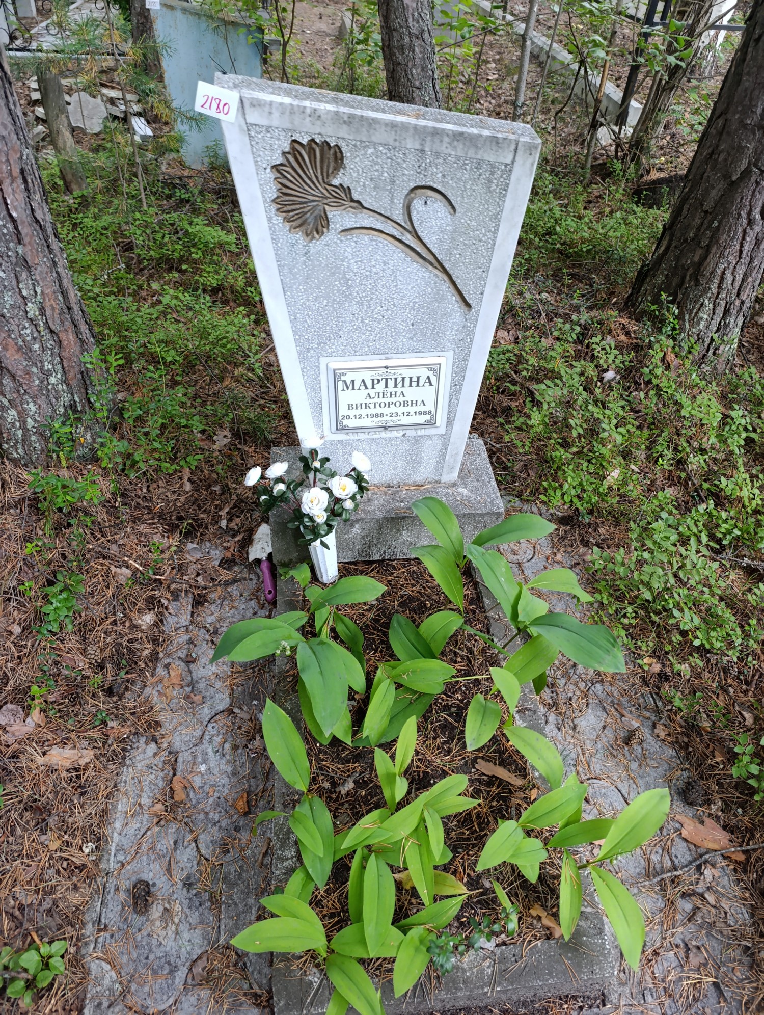 Дата рождения: 20.12.1988 Дата смерти: 23.12.1988 Наличие ограды: Нет Кладбище: Чернореченское Секция кладбища: 2 Номер ряда: 1 Номер захоронения: 2180 Вид захоронения: В землю Координаты: