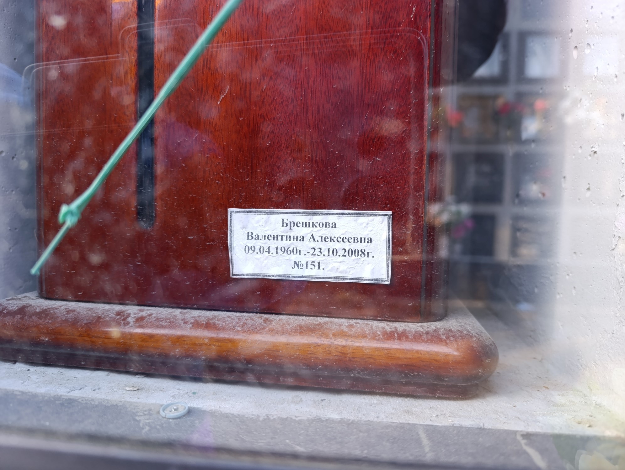Дата рождения: 09.04.1960 Дата смерти: 23.10.2008 Наличие ограды: Нет Кладбище: Чернореченское Секция кладбища: Колумбарий 2/1 Номер ряда: 4 Номер захоронения: 14 Вид захоронения: В землю Координаты: