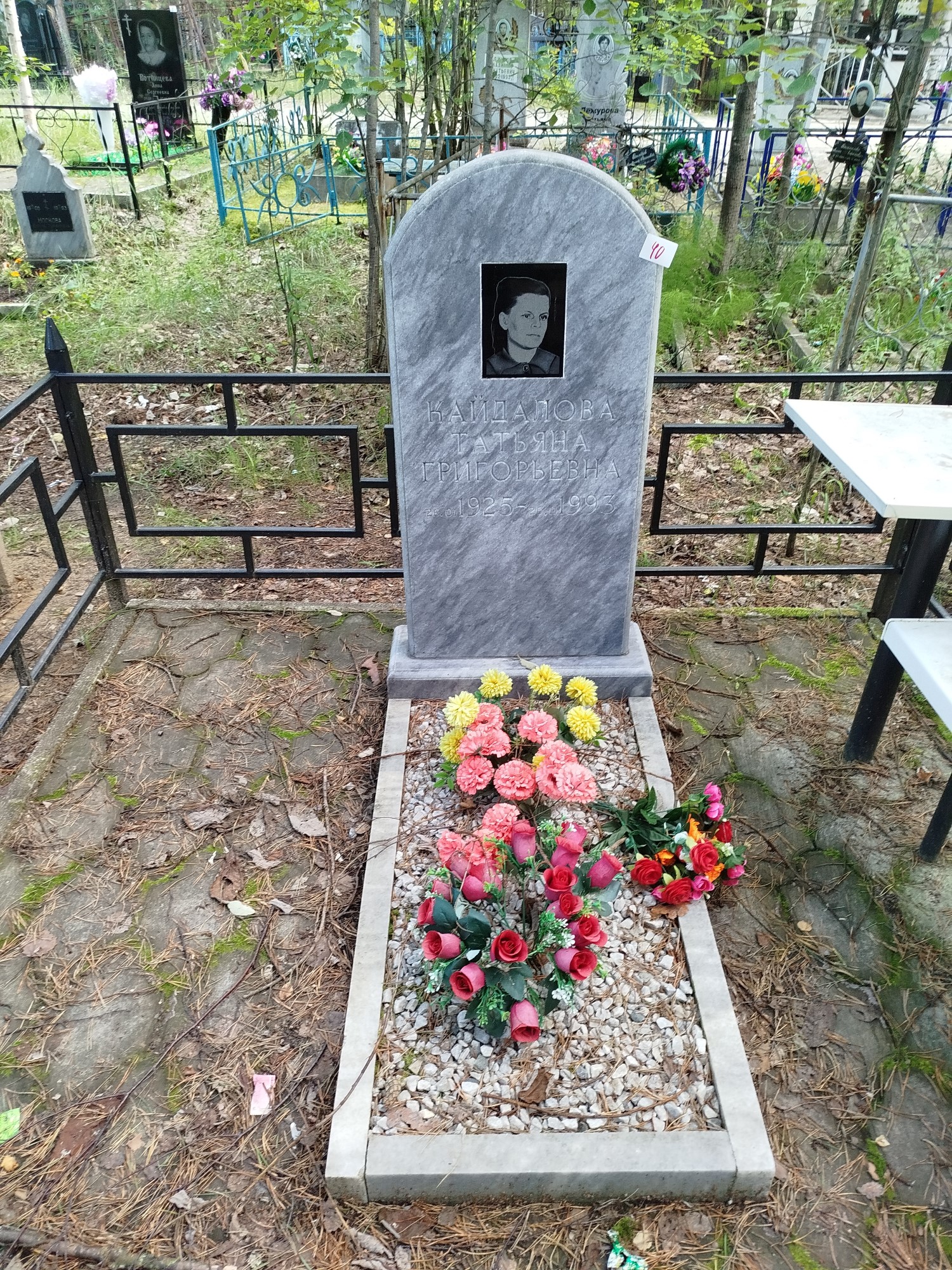 Дата рождения: 26.01.1925 Дата смерти: 20.11.1993 Наличие ограды: Нет Кладбище: Чернореченское Секция кладбища: 8 Номер ряда: 1 Номер захоронения: 40 Вид захоронения: В землю Координаты: