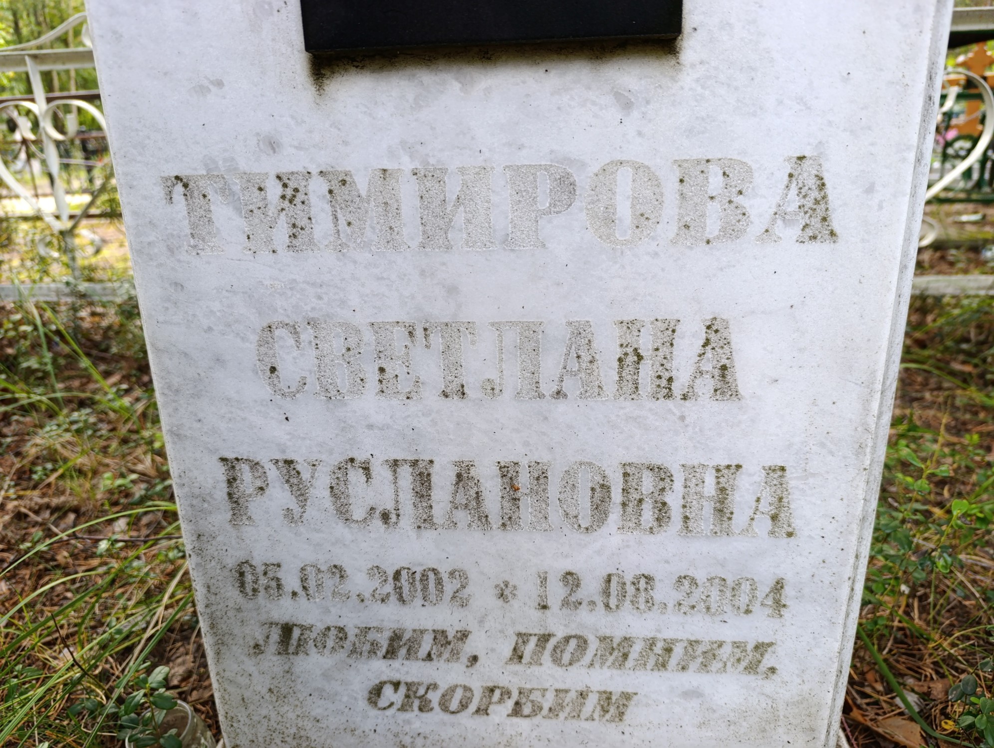 Дата рождения: 05.02.2002 Дата смерти: 12.08.2004 Наличие ограды: Нет Кладбище: Чернореченское Секция кладбища: 9 Номер ряда: 1 Номер захоронения: 389 Вид захоронения: В землю Координаты: