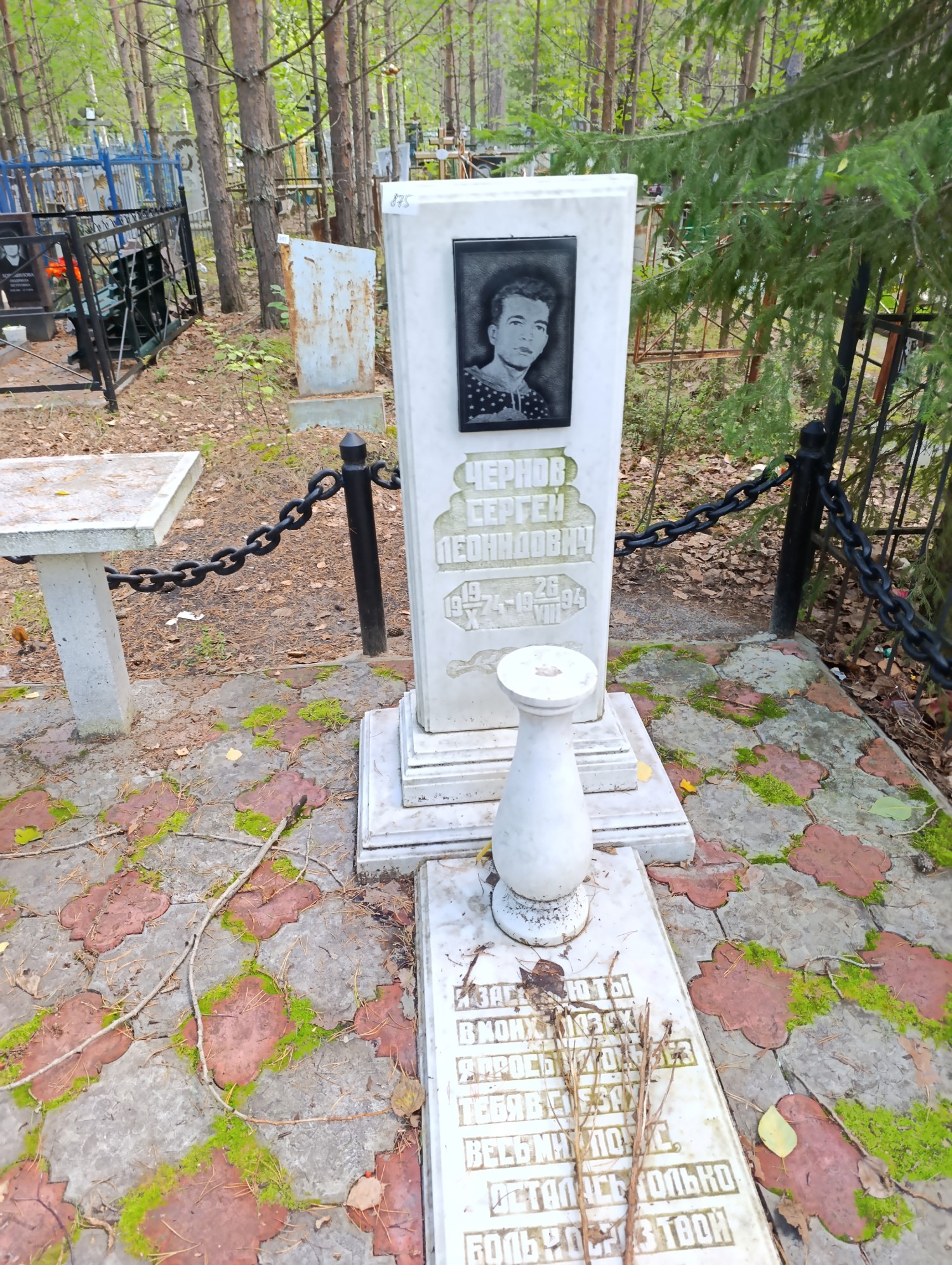 Дата рождения: 19.10.1974 Дата смерти: 26.08.1994 Наличие ограды: Нет Кладбище: Чернореченское Секция кладбища: 6 Номер ряда: 1 Номер захоронения: 875 Вид захоронения: В землю Координаты:
