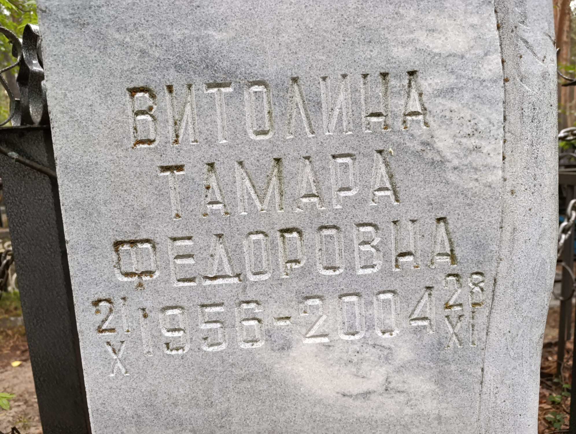 Дата рождения: 21.10.1956 Дата смерти: 28.11.2004 Наличие ограды: Нет Кладбище: Чернореченское Секция кладбища: 2 Номер ряда: 1 Номер захоронения: 2387 Вид захоронения: В землю Координаты: