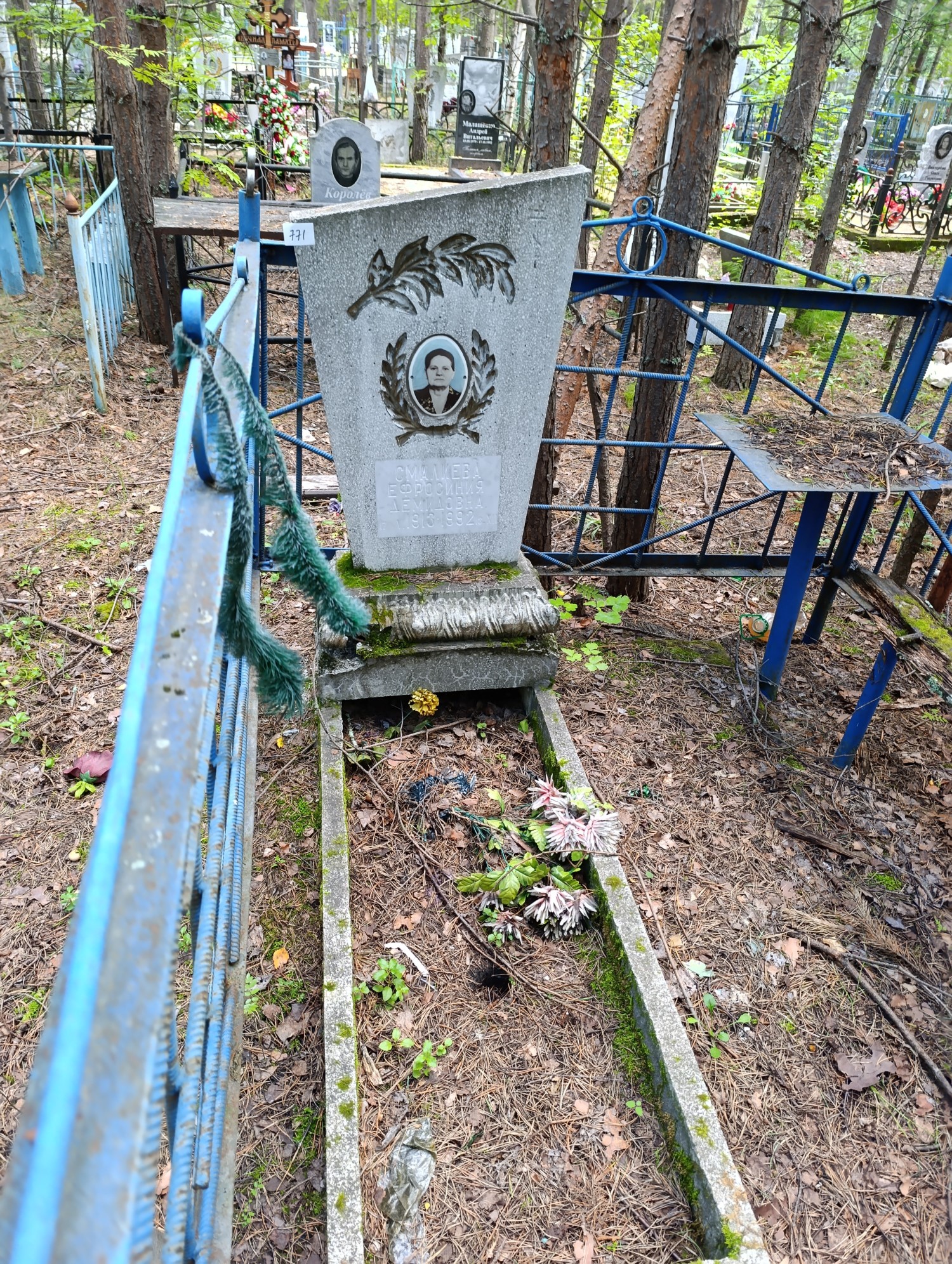 Дата рождения: 17.06.1913 Дата смерти: 13.12.1992 Наличие ограды: Нет Кладбище: Чернореченское Секция кладбища: 6 Номер ряда: 1 Номер захоронения: 771 Вид захоронения: В землю Координаты: