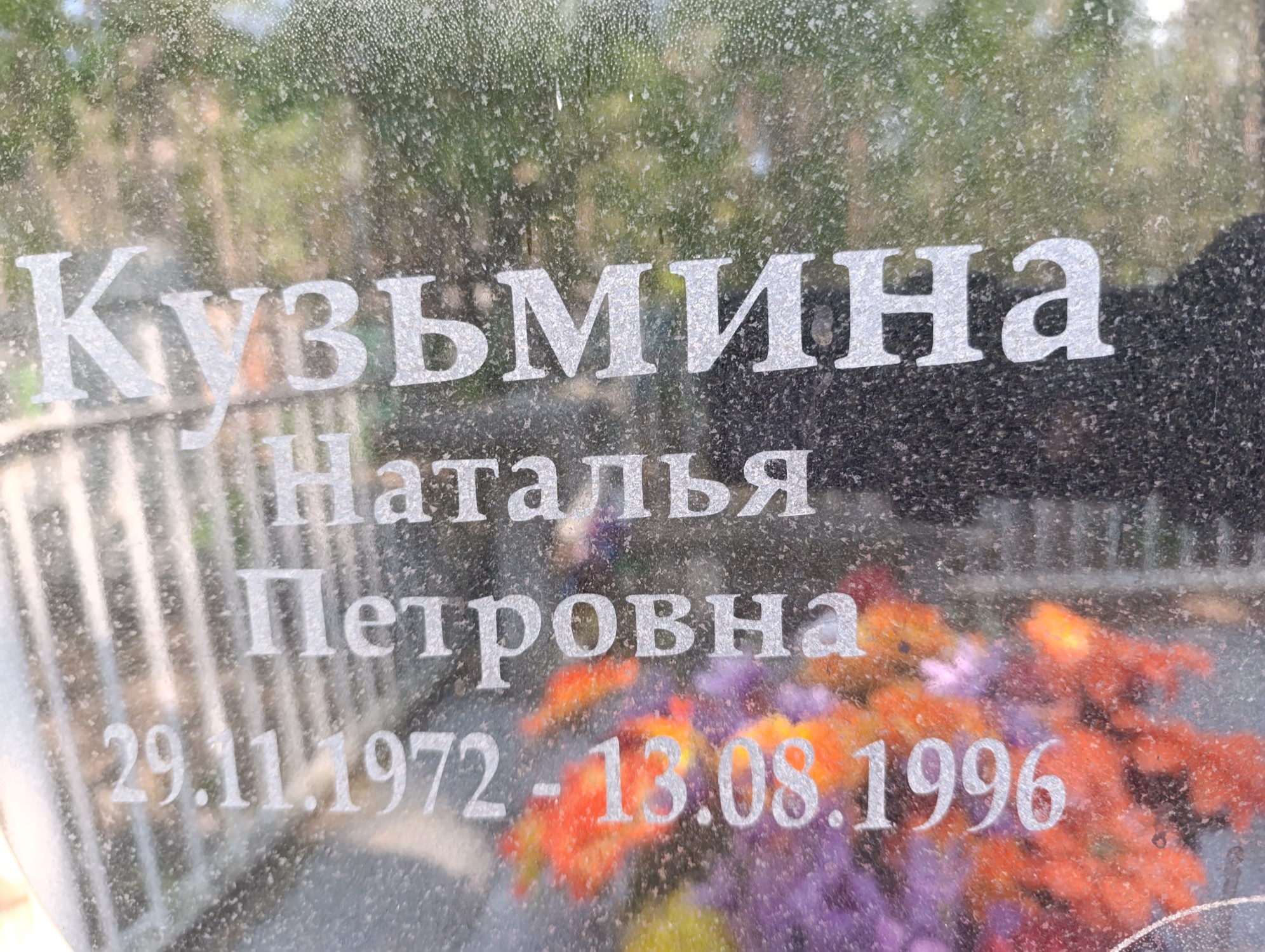 Дата рождения: 29.11.1972 Дата смерти: 13.08.1996 Наличие ограды: Нет Кладбище: Чернореченское Секция кладбища: 2 Номер ряда: 1 Номер захоронения: 368 Вид захоронения: В землю Координаты: