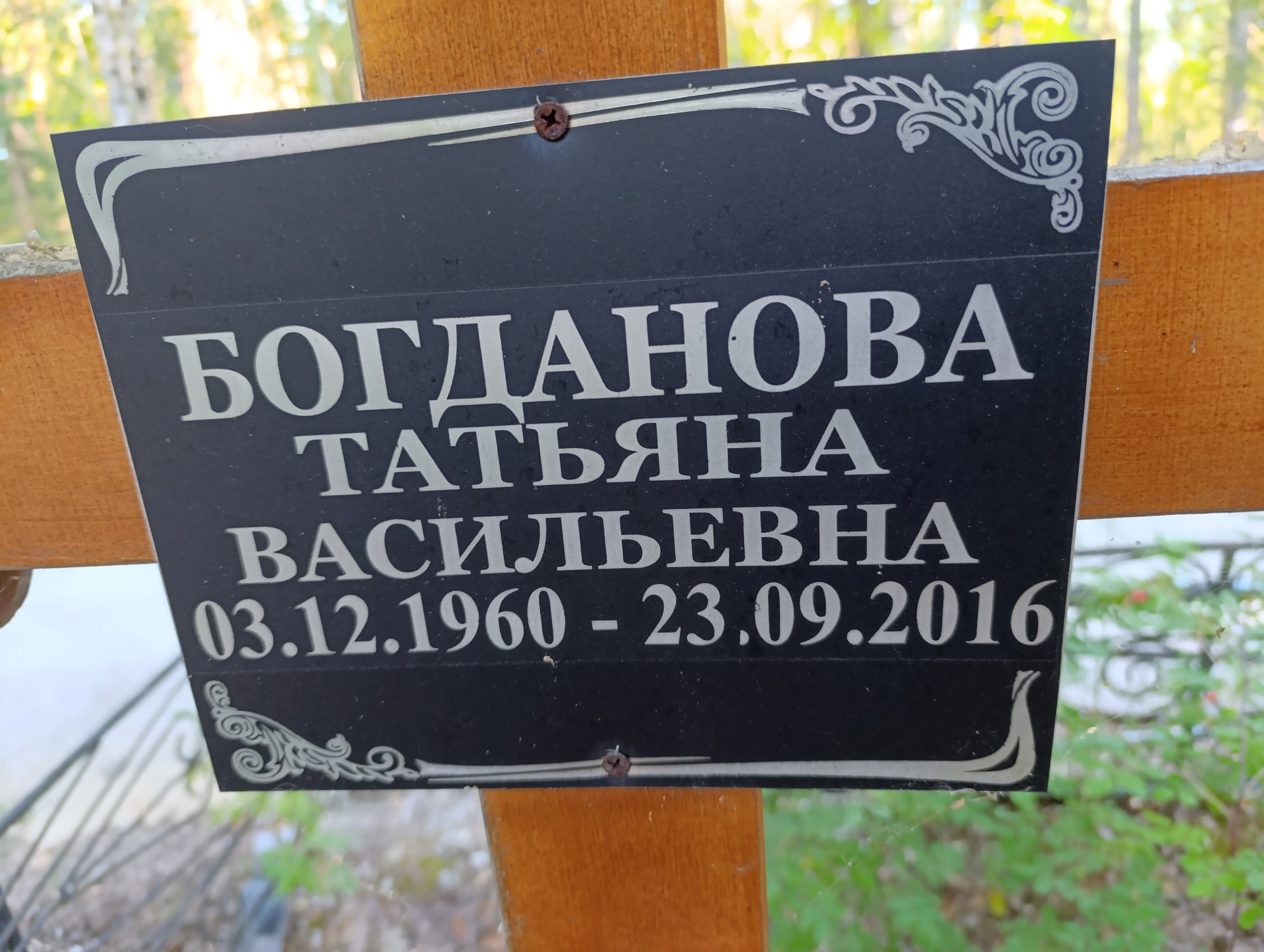 Дата рождения: 03.12.1960 Дата смерти: 23.09.2016 Наличие ограды: Нет Кладбище: Чернореченское Секция кладбища: 2 Номер ряда: 1 Номер захоронения: 59 Вид захоронения: В землю Координаты: