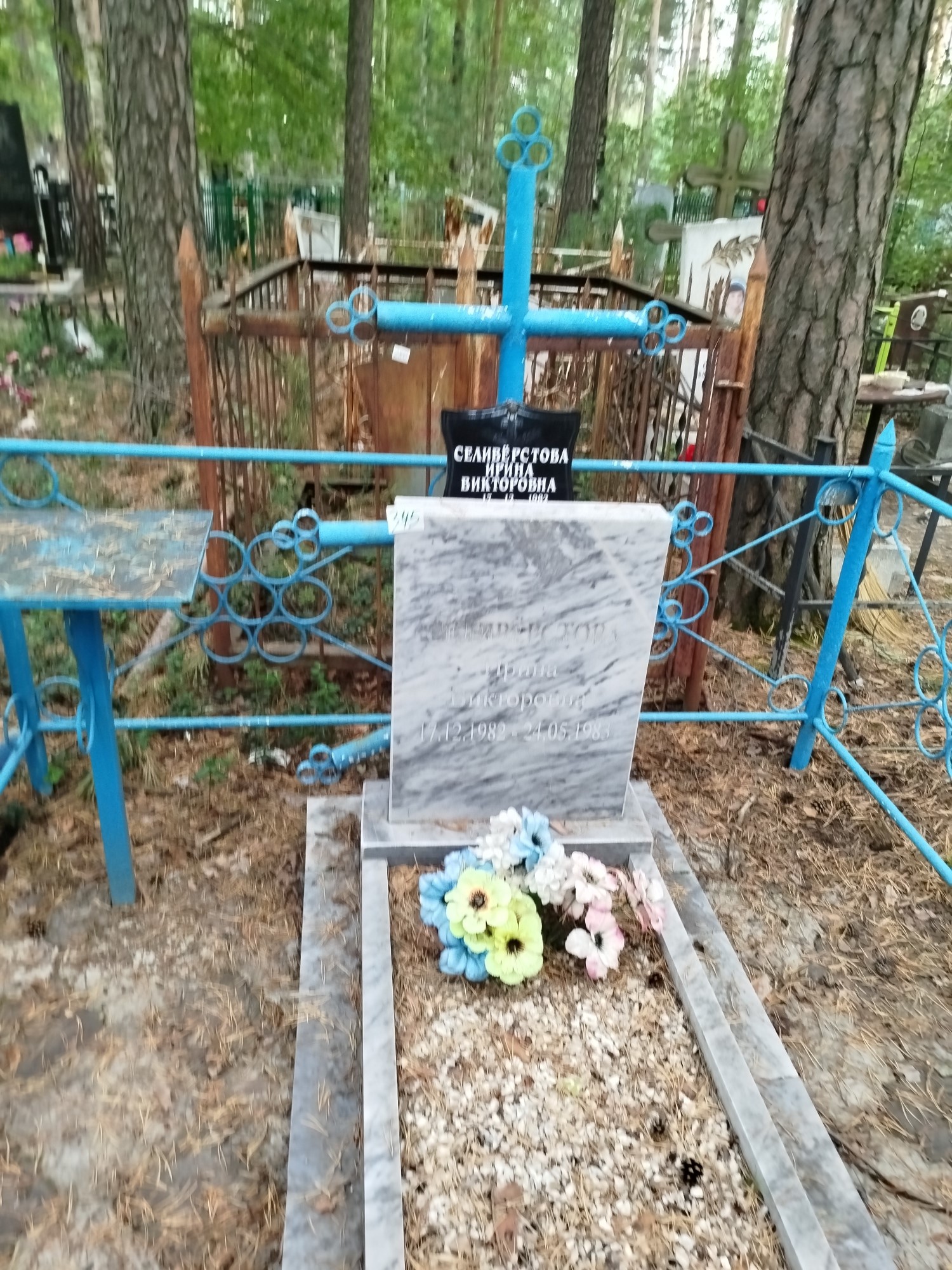 Дата рождения: 17.12.1982 Дата смерти: 24.05.1983 Наличие ограды: Нет Кладбище: Чернореченское Секция кладбища: 1 Номер ряда: 1 Номер захоронения: 345 Вид захоронения: В землю Координаты: