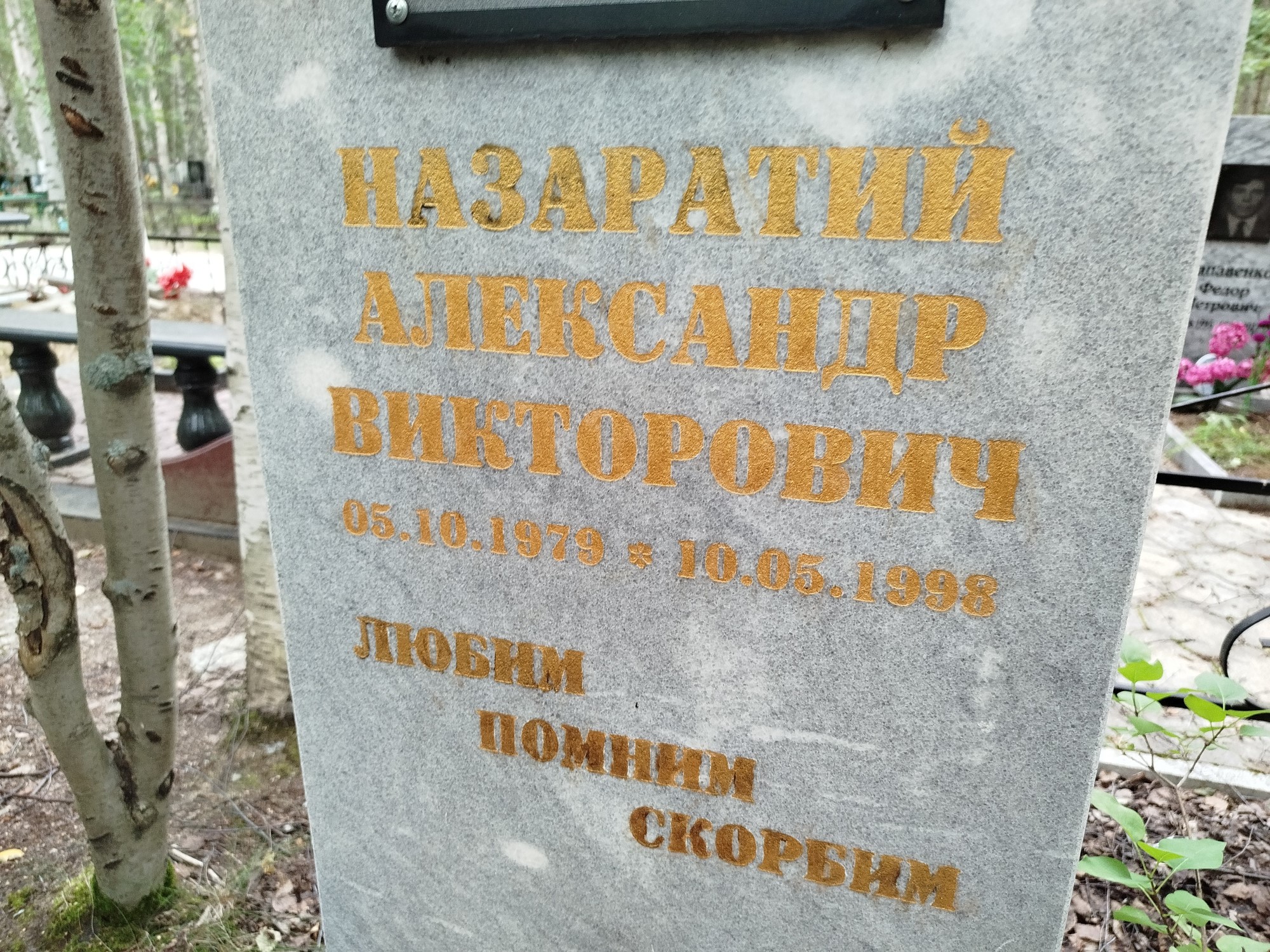 Дата рождения: 05.10.1979 Дата смерти: 10.05.1998 Наличие ограды: Нет Кладбище: Чернореченское II этап Секция кладбища: 6 Номер ряда: 1 Номер захоронения: 297 Вид захоронения: В землю Координаты: