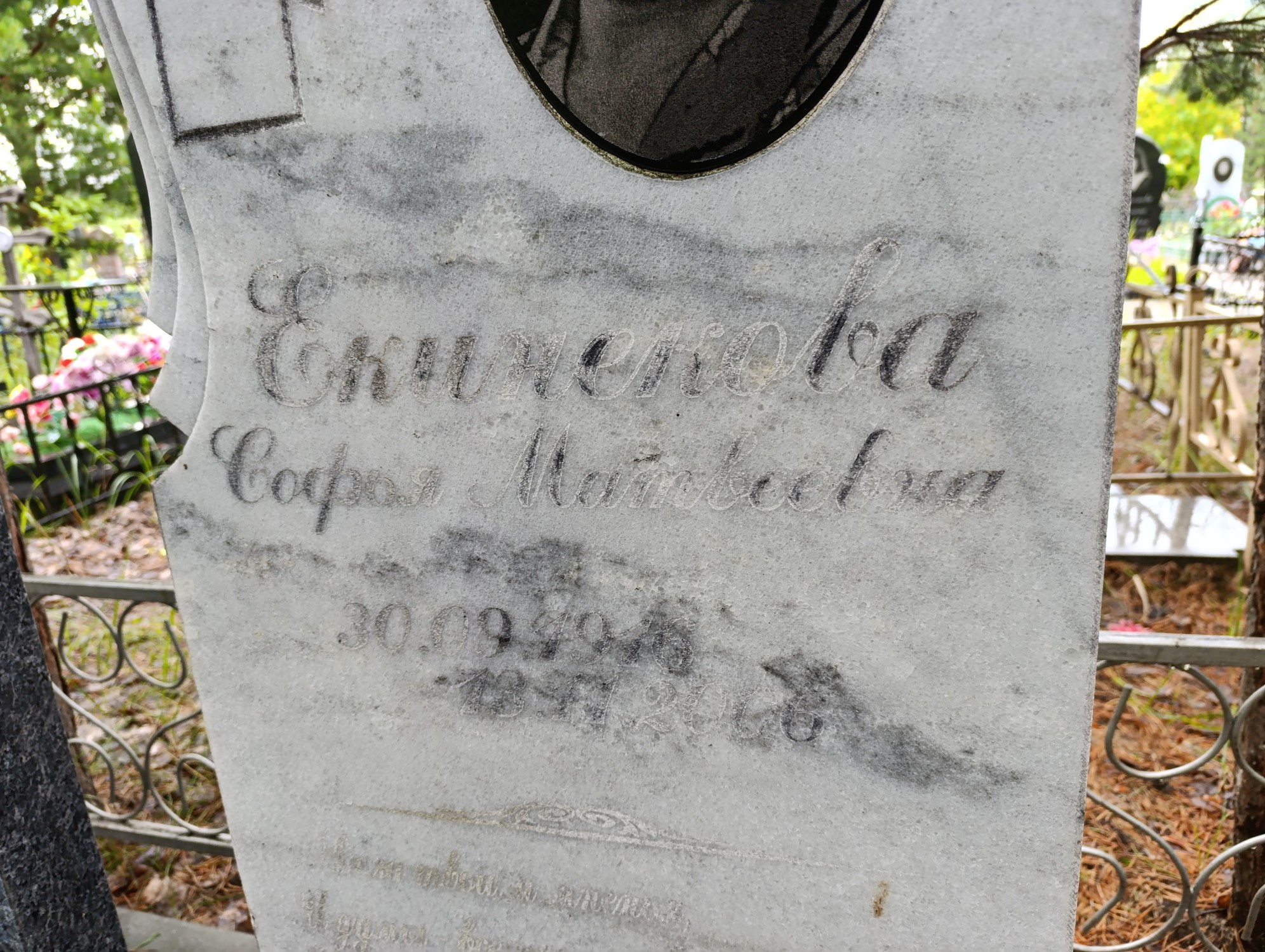 Дата рождения: Неизвестно Дата смерти: Неизвестно Наличие ограды: Нет Кладбище: Чернореченское II этап Секция кладбища: Номер ряда: 1 Номер захоронения: 347 Вид захоронения: В землю Координаты: