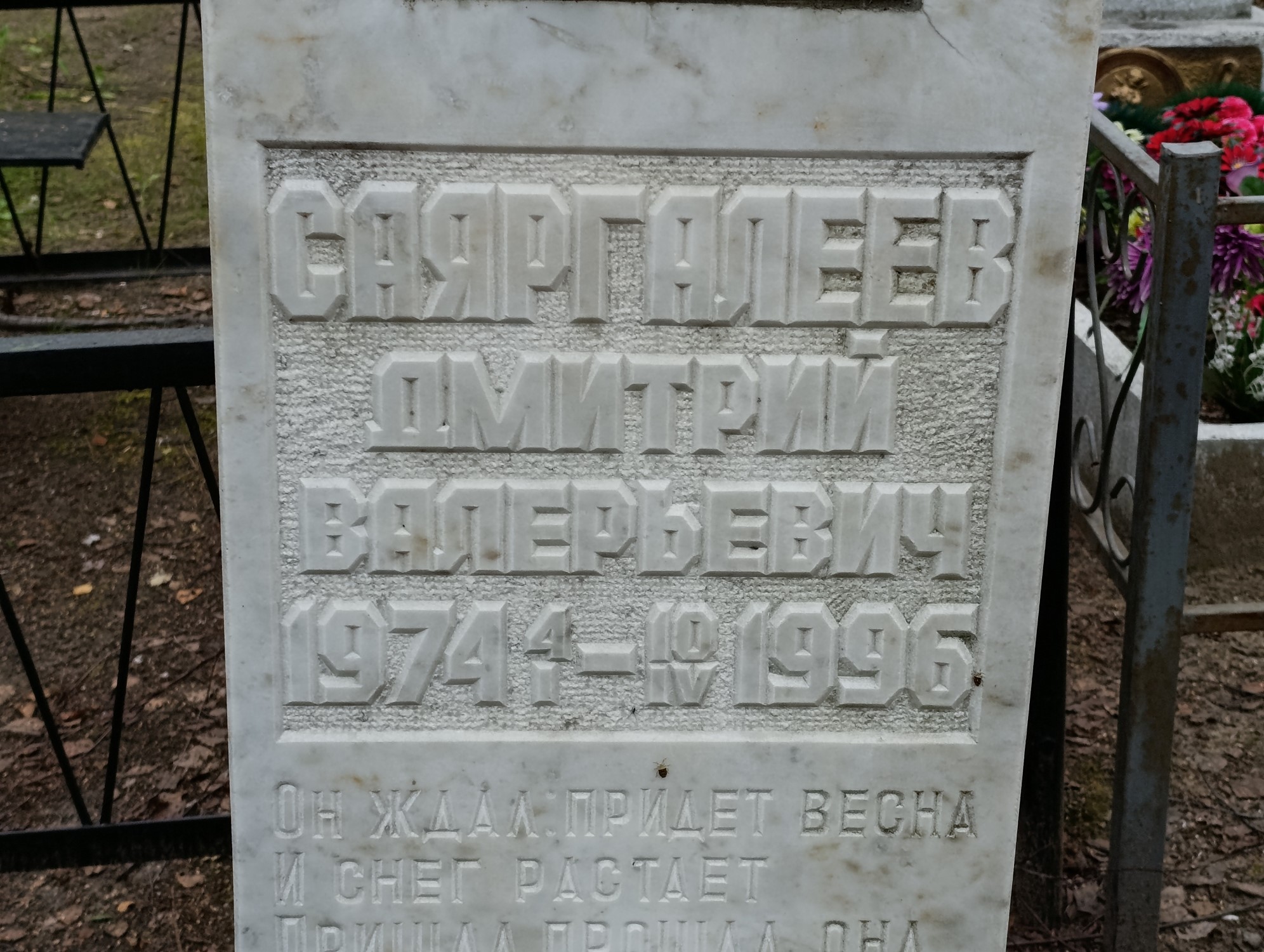 Дата рождения: 04.01.1974 Дата смерти: 10.04.1996 Наличие ограды: Нет Кладбище: Чернореченское II этап Секция кладбища: 3 Номер ряда: 1 Номер захоронения: 499 Вид захоронения: В землю Координаты: