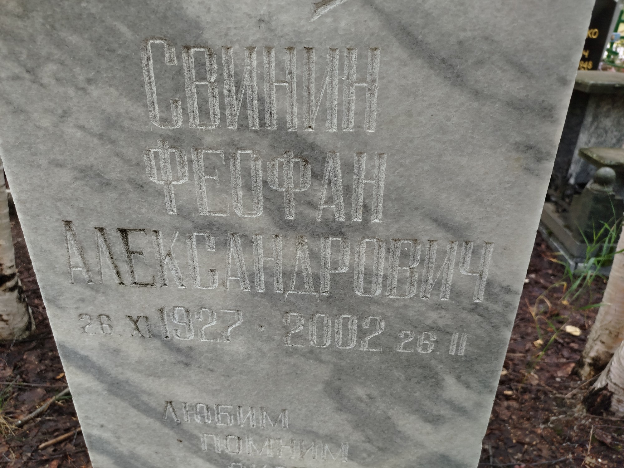 Дата рождения: 26.11.1927 Дата смерти: 26.02.2002 Наличие ограды: Нет Кладбище: Чернореченское II этап Секция кладбища: 13 Номер ряда: 1 Номер захоронения: 344 Вид захоронения: В землю Координаты: