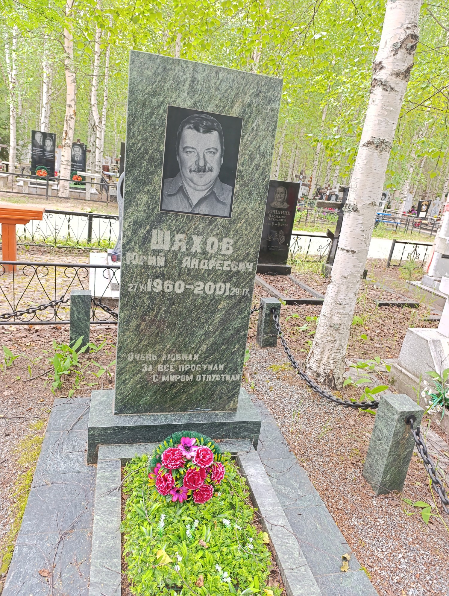 Дата рождения: 27.06.1960 Дата смерти: 29.09.2001 Наличие ограды: Нет Кладбище: Чернореченское II этап Секция кладбища: 6 Номер ряда: 1 Номер захоронения: 411 Вид захоронения: В землю Координаты: