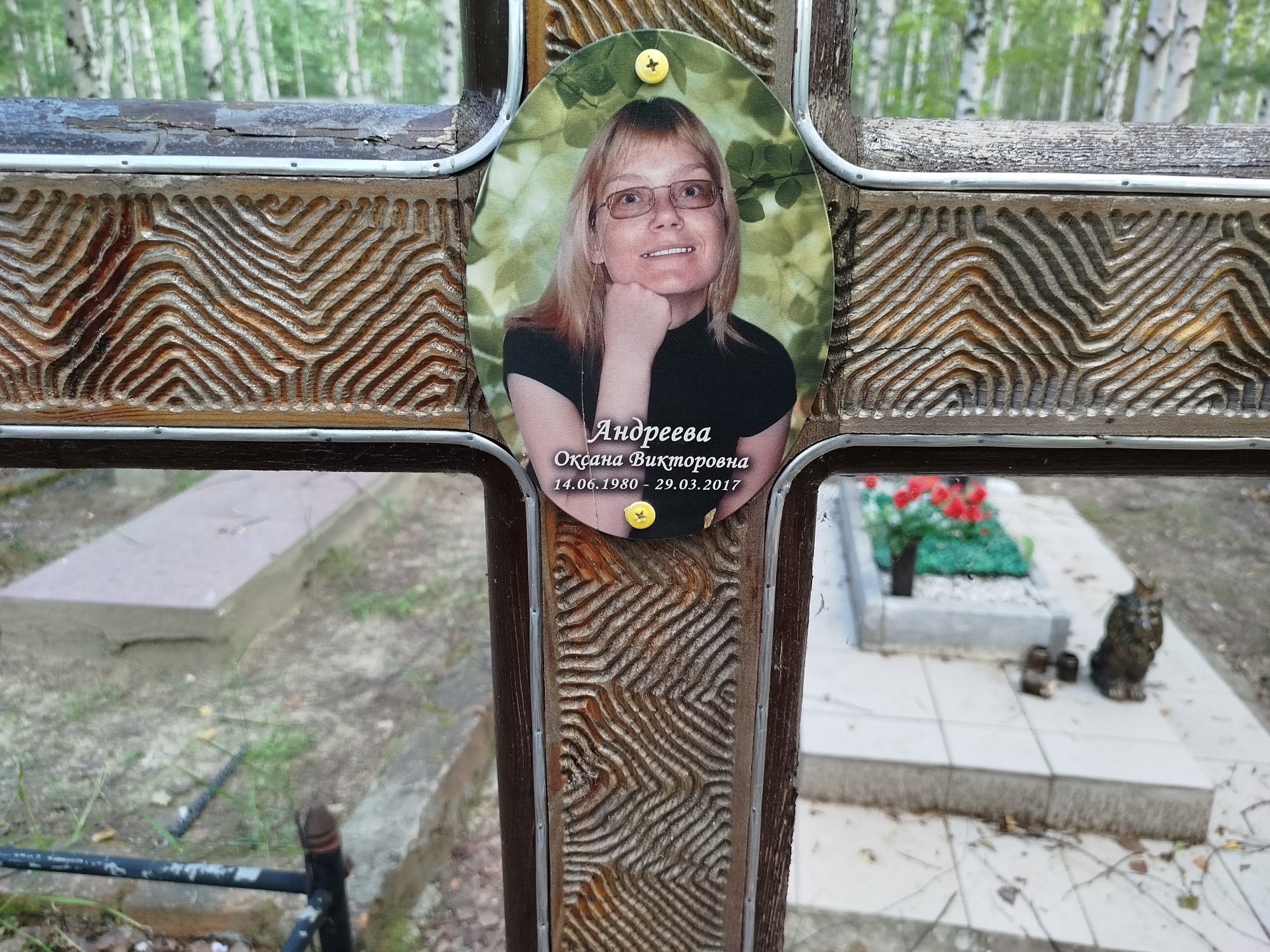 Дата рождения: 14.06.1980 Дата смерти: 29.03.2017 Наличие ограды: Нет Кладбище: Чернореченское II этап Секция кладбища: 9 Номер ряда: 1 Номер захоронения: 591 Вид захоронения: В землю Координаты: