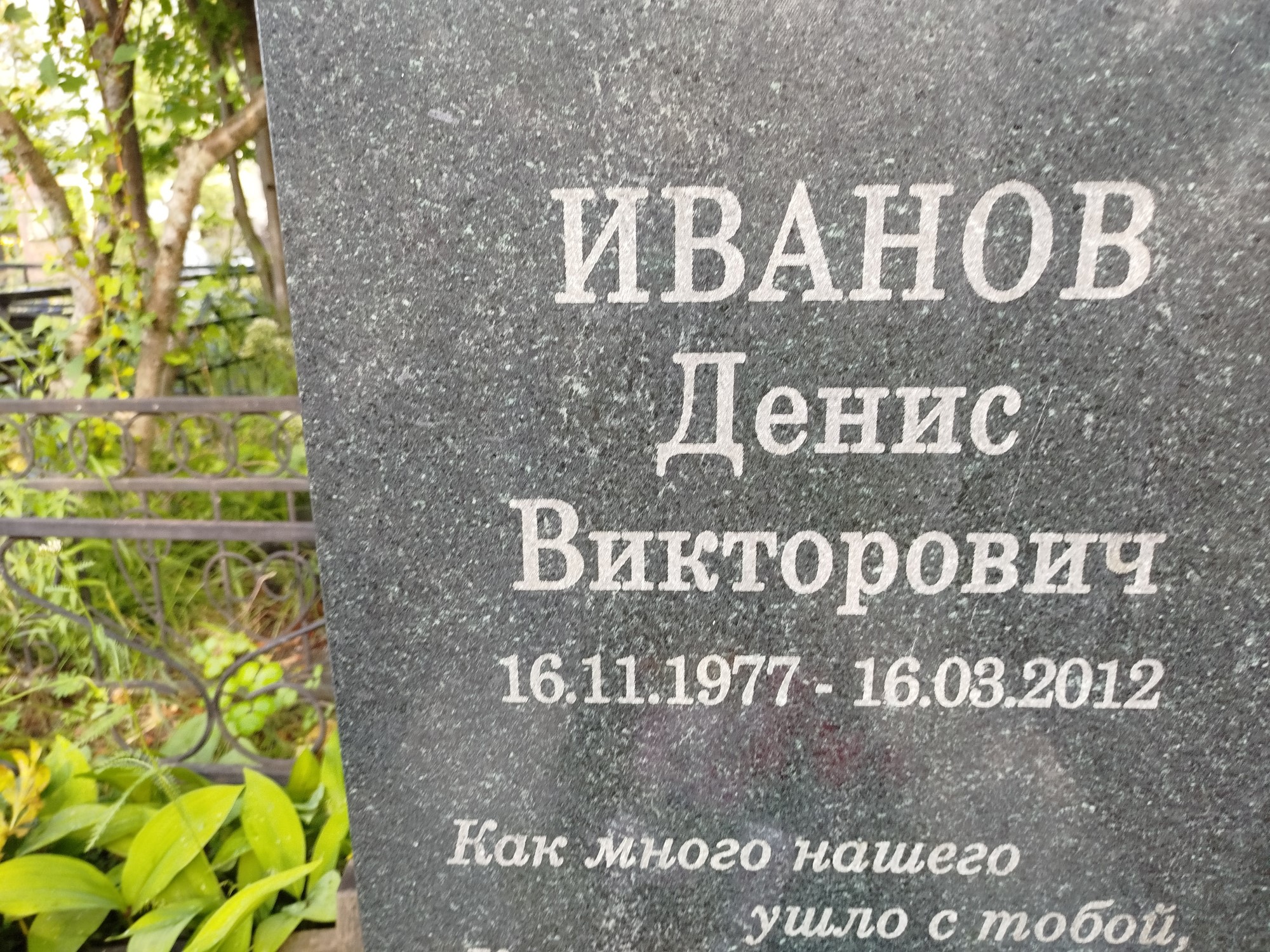 Дата рождения: 16.11.1977 Дата смерти: 16.03.2012 Наличие ограды: Нет Кладбище: Чернореченское II этап Секция кладбища: Номер ряда: 1 Номер захоронения: 625 Вид захоронения: В землю Координаты: