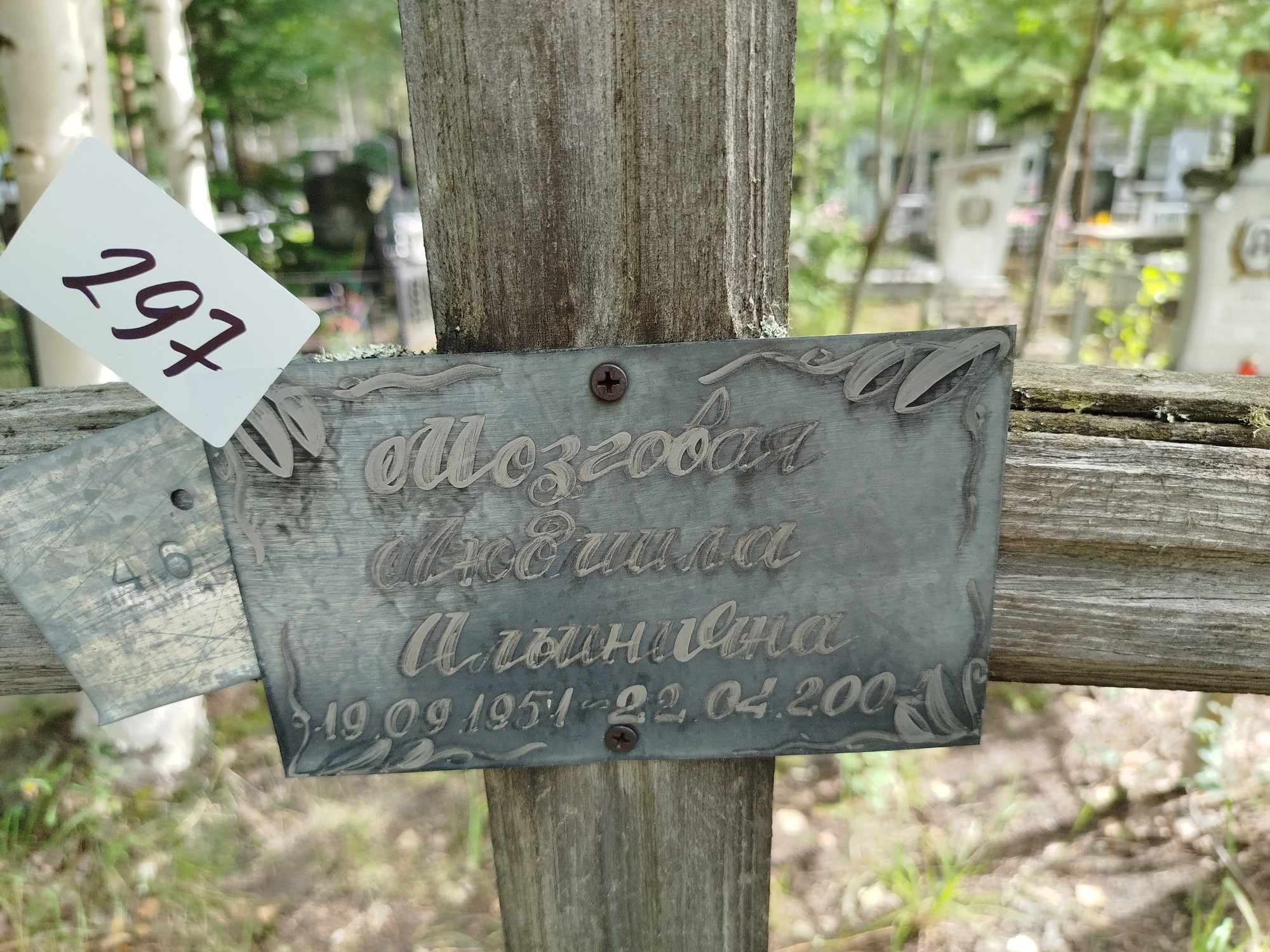 Дата рождения: 19.09.1951 Дата смерти: 22.04.2004 Наличие ограды: Нет Кладбище: Чернореченское II этап Секция кладбища: 16 Номер ряда: 1 Номер захоронения: 297 Вид захоронения: В землю Координаты: