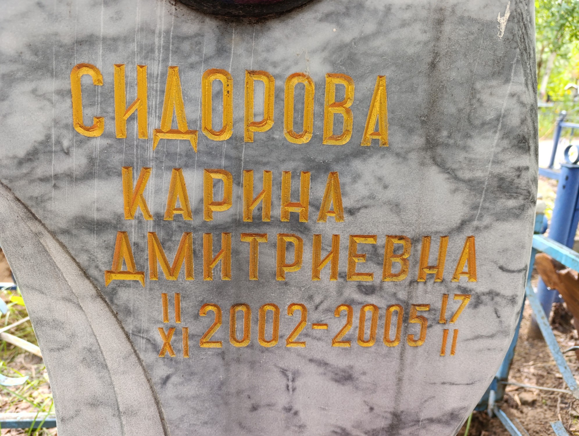 Дата рождения: 11.11.2002 Дата смерти: 17.02.2005 Наличие ограды: Нет Кладбище: Чернореченское II этап Секция кладбища: 17 Номер ряда: 1 Номер захоронения: 96 Вид захоронения: В землю Координаты: