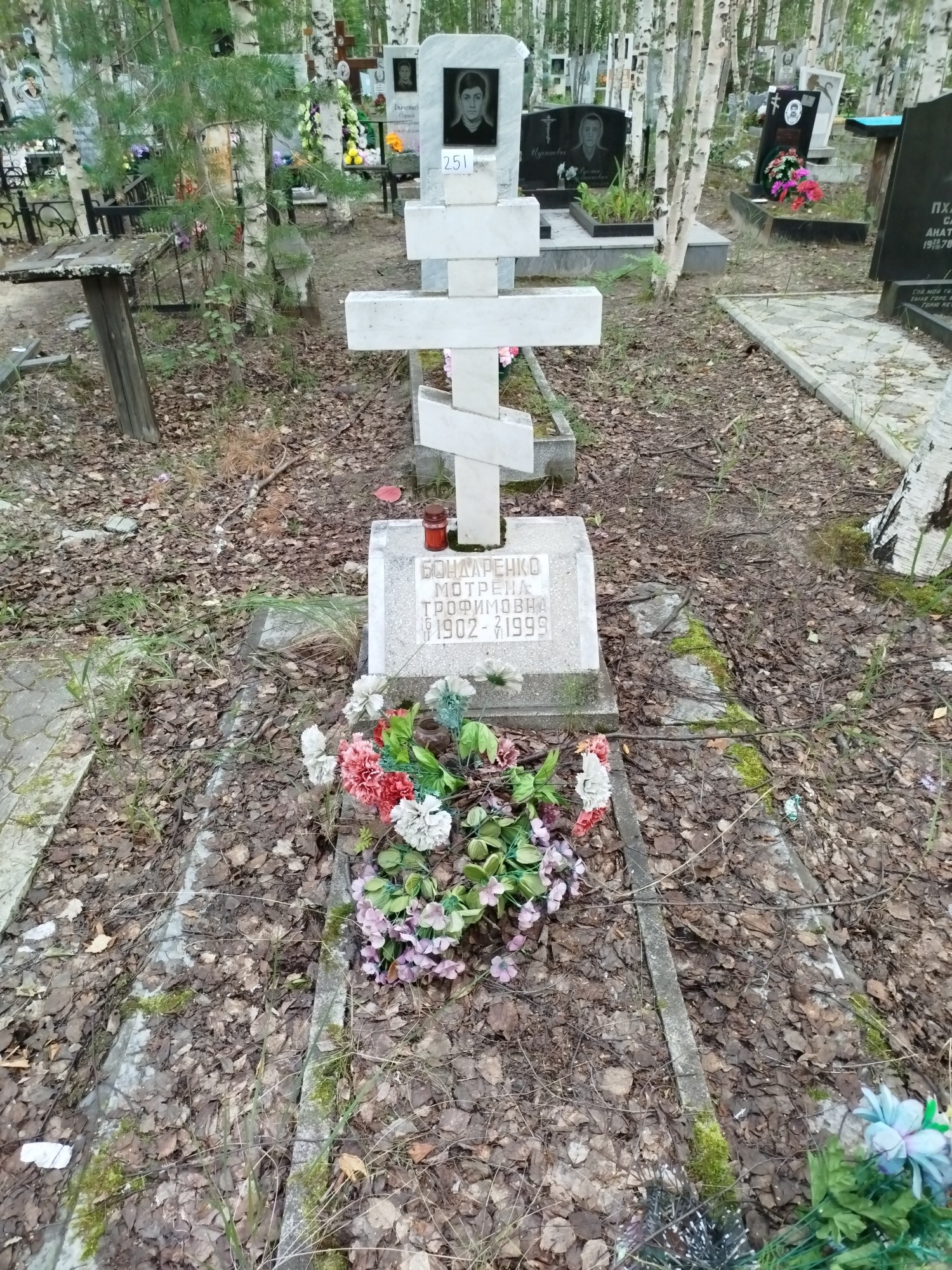 Дата рождения: 16.02.1902 Дата смерти: 02.06.1999 Наличие ограды: Нет Кладбище: Чернореченское II этап Секция кладбища: 9 Номер ряда: 1 Номер захоронения: 251 Вид захоронения: В землю Координаты: