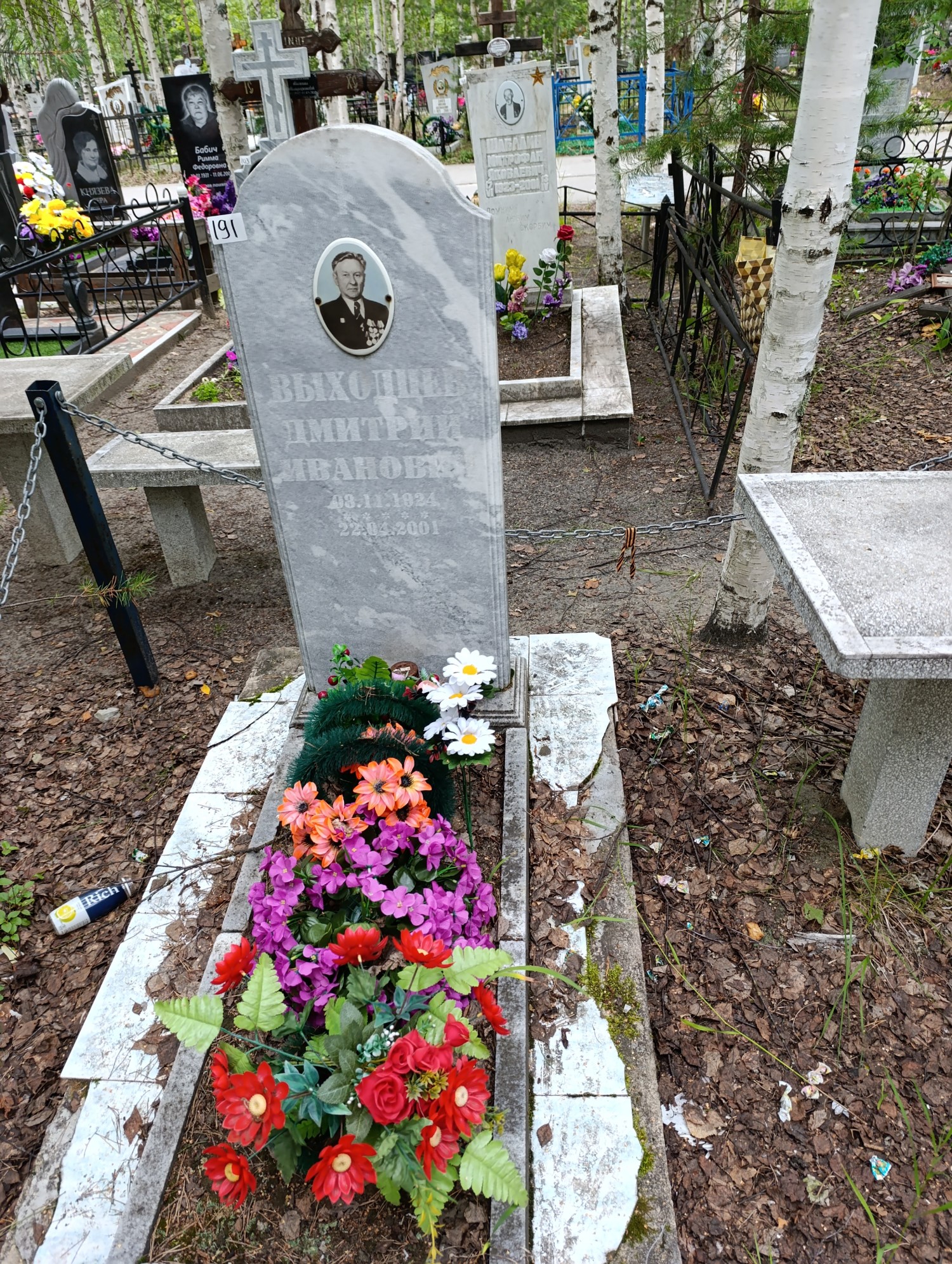 Дата рождения: 08.11.1924 Дата смерти: 22.04.2001 Наличие ограды: Нет Кладбище: Чернореченское II этап Секция кладбища: 12 Номер ряда: 1 Номер захоронения: 191 Вид захоронения: В землю Координаты: