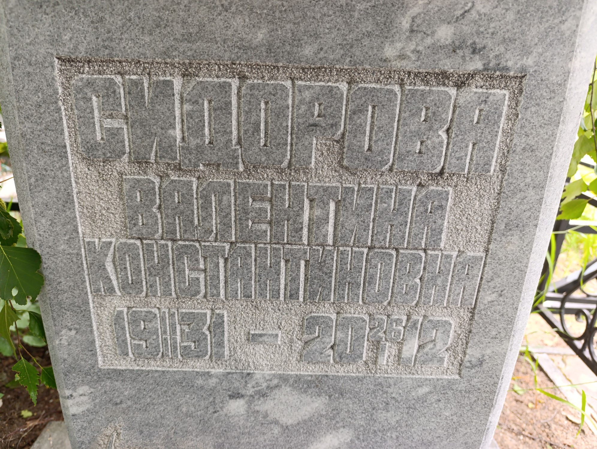 Дата рождения: 11.02.1931 Дата смерти: 26.01.2012 Наличие ограды: Нет Кладбище: Чернореченское II этап Секция кладбища: 7 Номер ряда: 1 Номер захоронения: 173 Вид захоронения: В землю Координаты: