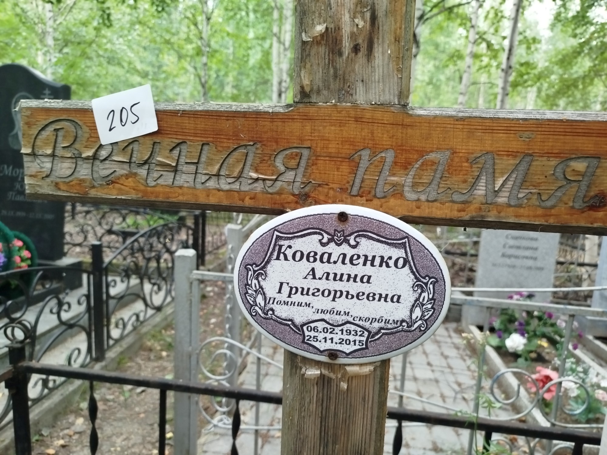 Дата рождения: 06.02.1932 Дата смерти: 25.11.2015 Наличие ограды: Нет Кладбище: Чернореченское II этап Секция кладбища: 7 Номер ряда: 1 Номер захоронения: 205 Вид захоронения: В землю Координаты:
