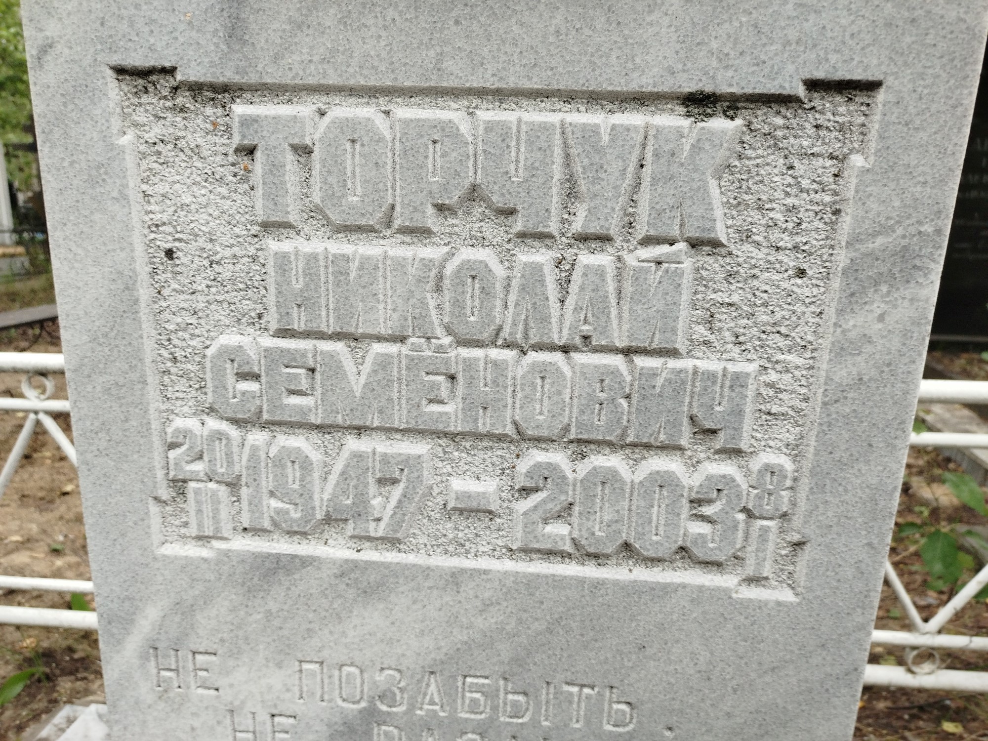Дата рождения: 20.02.1947 Дата смерти: 08.01.2003 Наличие ограды: Нет Кладбище: Чернореченское II этап Секция кладбища: 7 Номер ряда: 1 Номер захоронения: 267 Вид захоронения: В землю Координаты:
