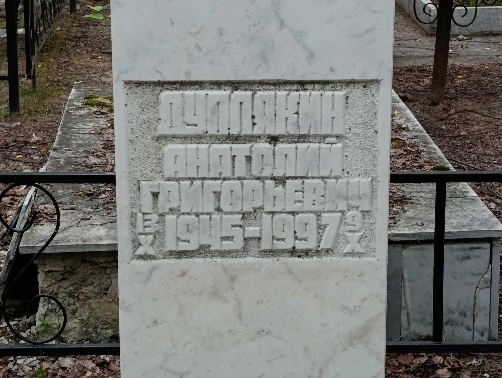 Дата рождения: 13.10.1945 Дата смерти: 09.10.1997 Наличие ограды: Нет Кладбище: Чернореченское II этап Секция кладбища: 3 Номер ряда: 1 Номер захоронения: 435 Вид захоронения: В землю Координаты: