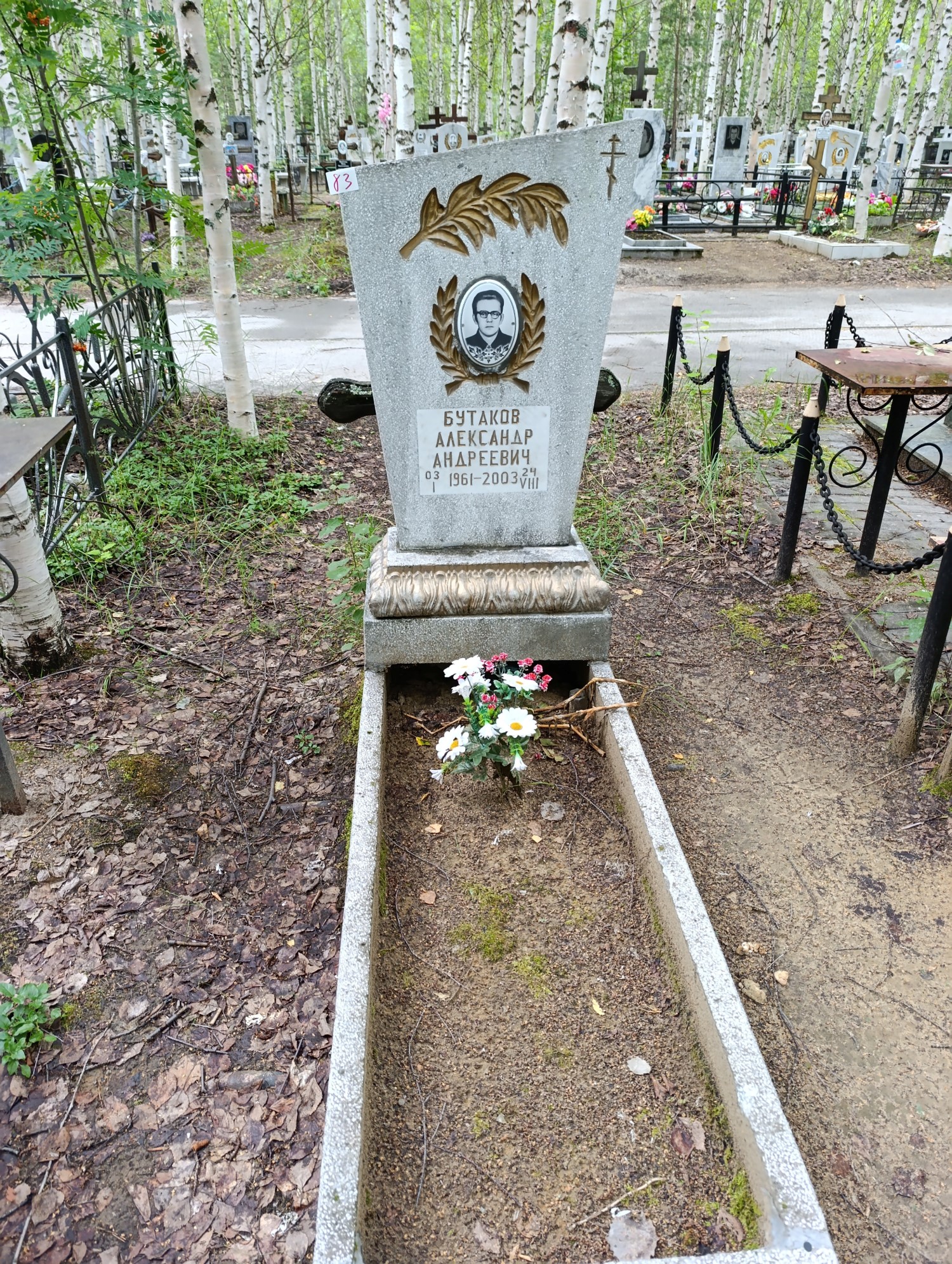 Дата рождения: 03.01.1961 Дата смерти: 24.08.2003 Наличие ограды: Нет Кладбище: Чернореченское II этап Секция кладбища: 14 Номер ряда: 1 Номер захоронения: 83 Вид захоронения: В землю Координаты: