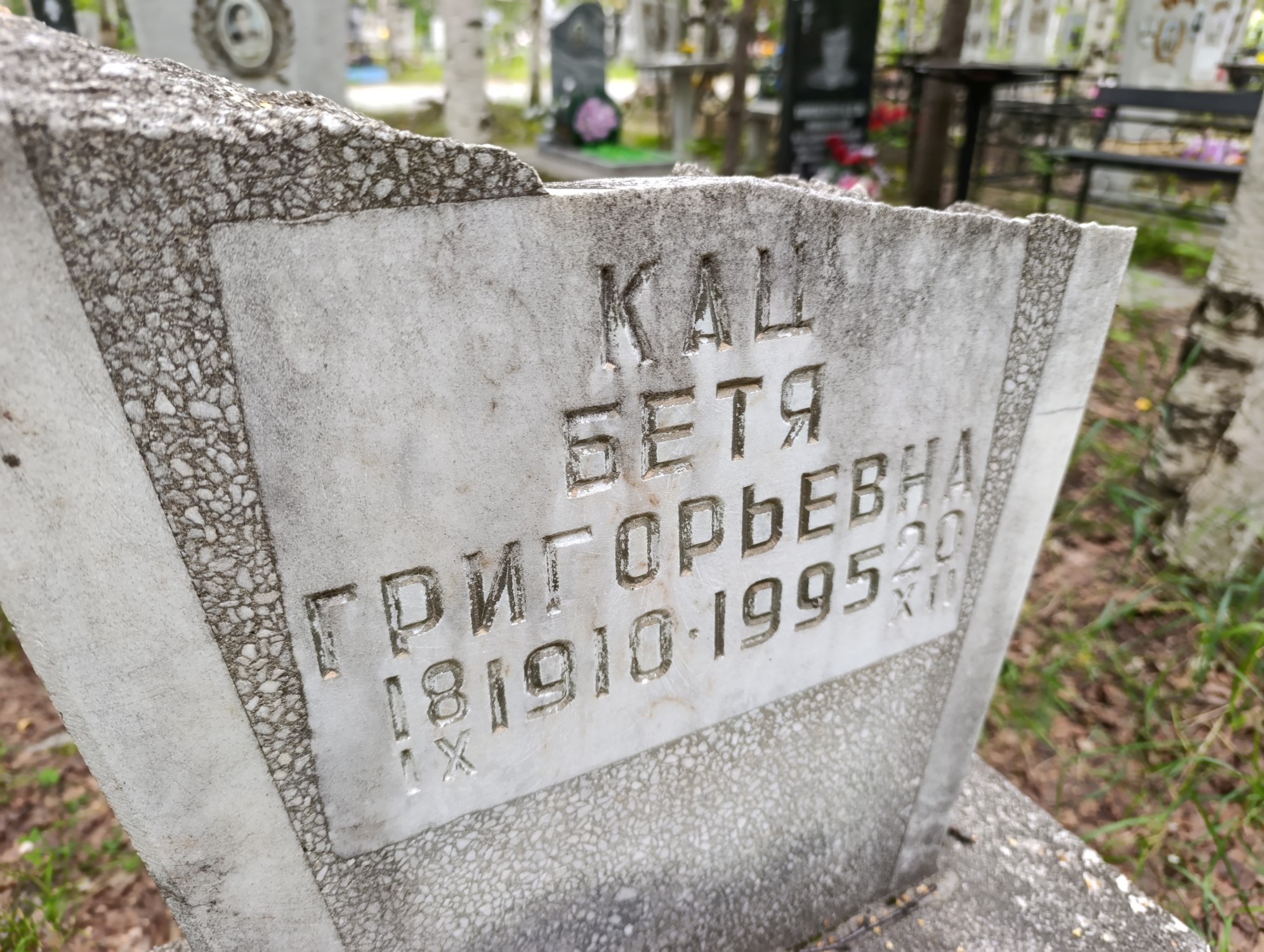 Дата рождения: 18.09.1910 Дата смерти: 20.12.1995 Наличие ограды: Нет Кладбище: Чернореченское II этап Секция кладбища: 3 Номер ряда: 1 Номер захоронения: 216 Вид захоронения: В землю Координаты: