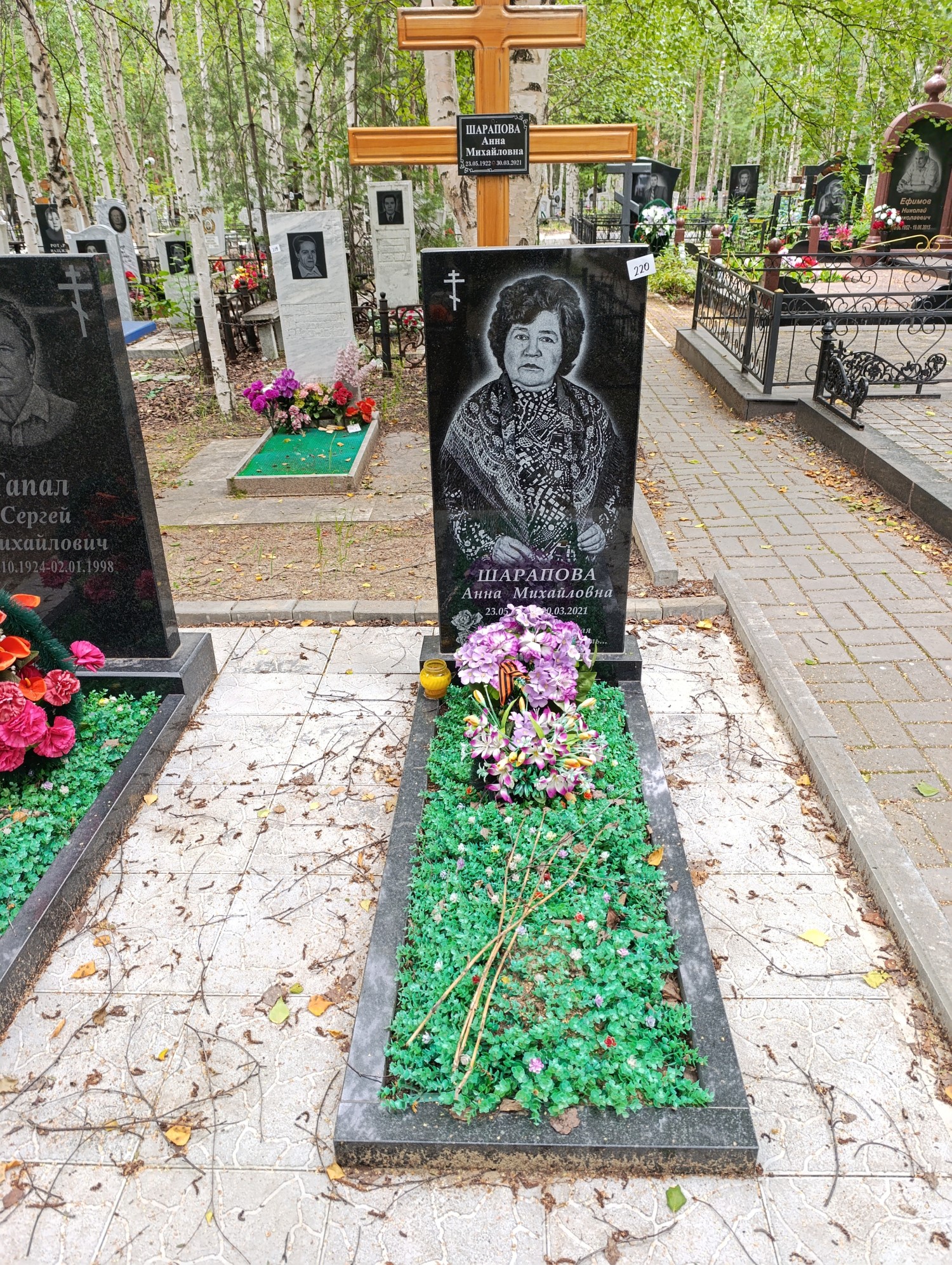 Дата рождения: 23.05.1922 Дата смерти: 30.03.2021 Наличие ограды: Нет Кладбище: Чернореченское II этап Секция кладбища: 4 Номер ряда: 1 Номер захоронения: 220 Вид захоронения: В землю Координаты: