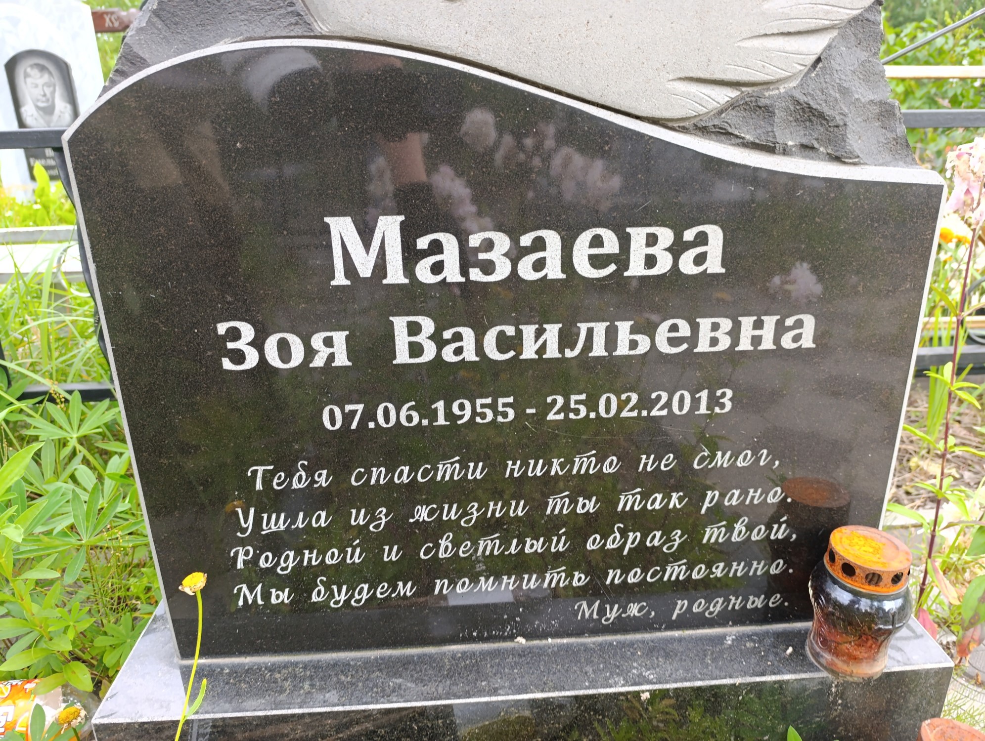 Дата рождения: 07.06.1955 Дата смерти: 25.02.2013 Наличие ограды: Нет Кладбище: Чернореченское II этап Секция кладбища: Номер ряда: 1 Номер захоронения: 163 Вид захоронения: В землю Координаты: