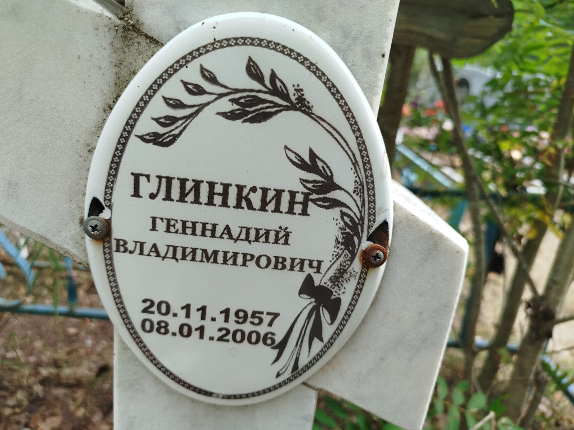 Дата рождения: 20.11.1957 Дата смерти: 08.01.2006 Наличие ограды: Нет Кладбище: Чернореченское II этап Секция кладбища: 10 Номер ряда: 1 Номер захоронения: 417 Вид захоронения: В землю Координаты: