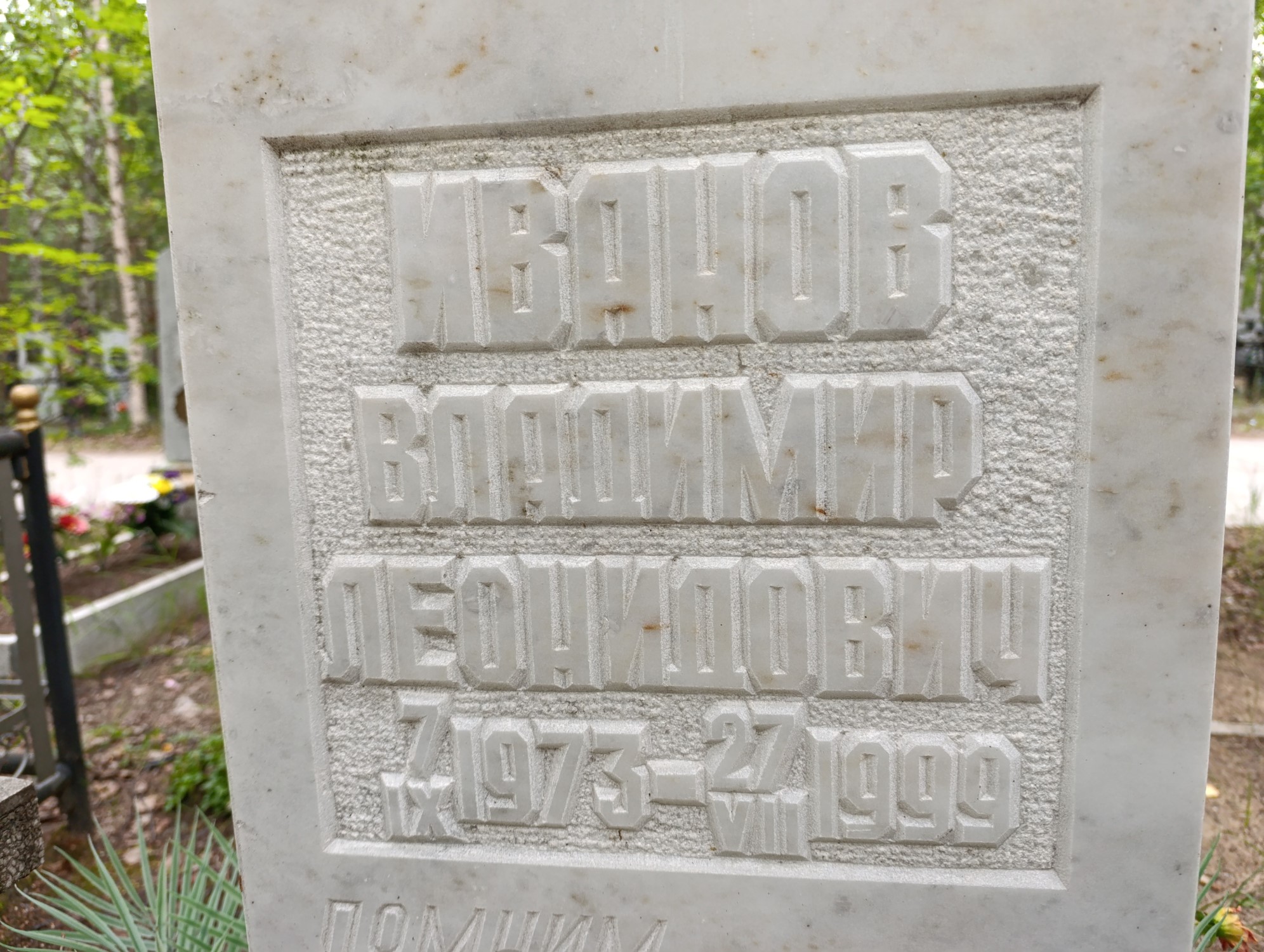 Дата рождения: 07.09.1973 Дата смерти: 27.07.1999 Наличие ограды: Нет Кладбище: Чернореченское II этап Секция кладбища: 9 Номер ряда: 1 Номер захоронения: 36 Вид захоронения: В землю Координаты: