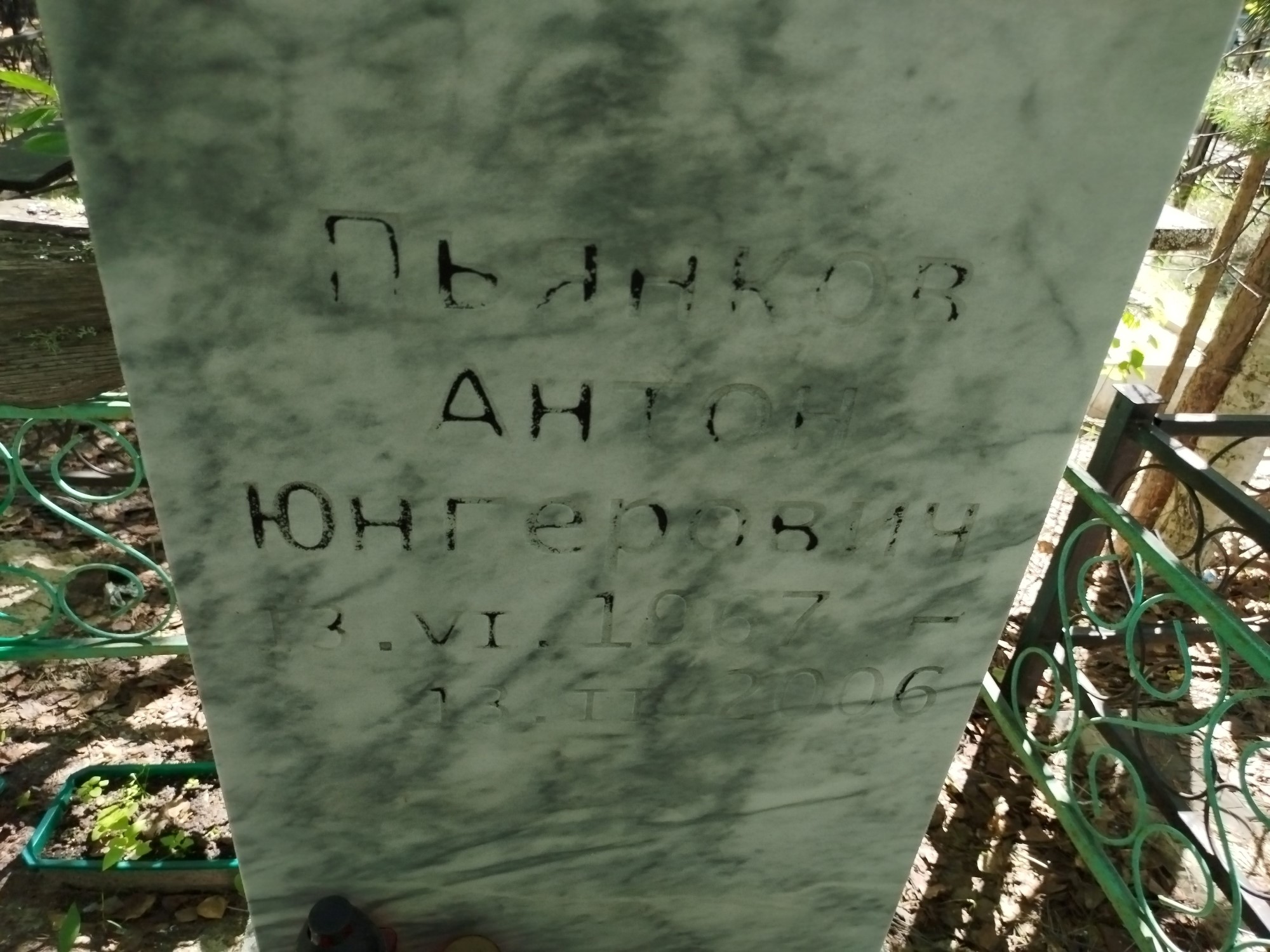 Дата рождения: 13.06.1967 Дата смерти: 13.02.2006 Наличие ограды: Нет Кладбище: Чернореченское II этап Секция кладбища: 10 Номер ряда: 1 Номер захоронения: 213 Вид захоронения: В землю Координаты: