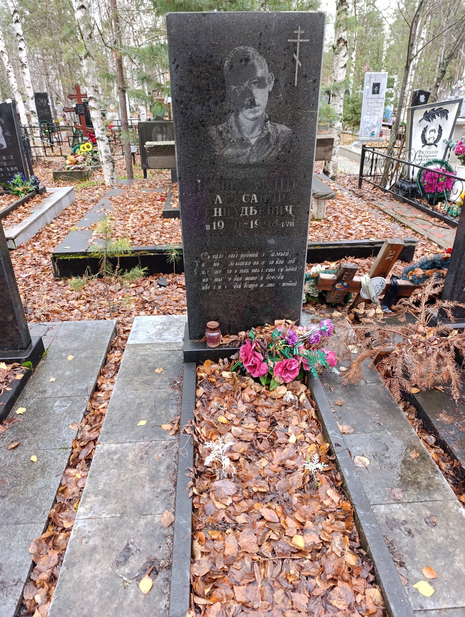 Дата рождения: 08.08.1979 Дата смерти: 01.08.1998 Наличие ограды: Нет Кладбище: Чернореченское II этап Секция кладбища: 4 Номер ряда: 1 Номер захоронения: 883 Вид захоронения: В землю Координаты: